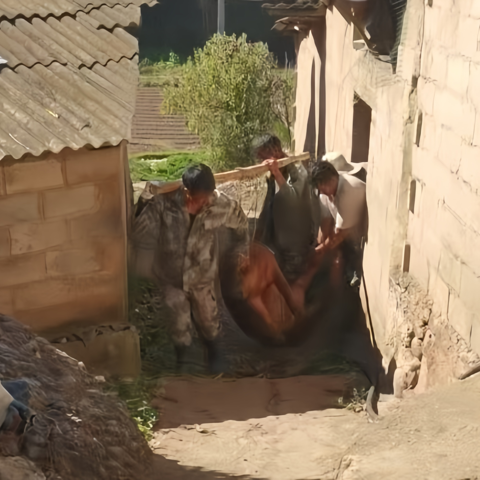 天刚蒙蒙亮,第一缕晨曦拂过屋顶青瓦,小院便苏醒了。主人家清早起身张罗,猪圈里的年猪似乎也感知到气氛不同,哼唧着来回走动。几个结实的汉子利落地卷起袖子,走进圈内,齐心协力将肥猪稳稳抬出。嘹亮的嚎叫声划破晨雾——一场承载着年味与乡情的宰年猪仪式,就此拉开序幕。