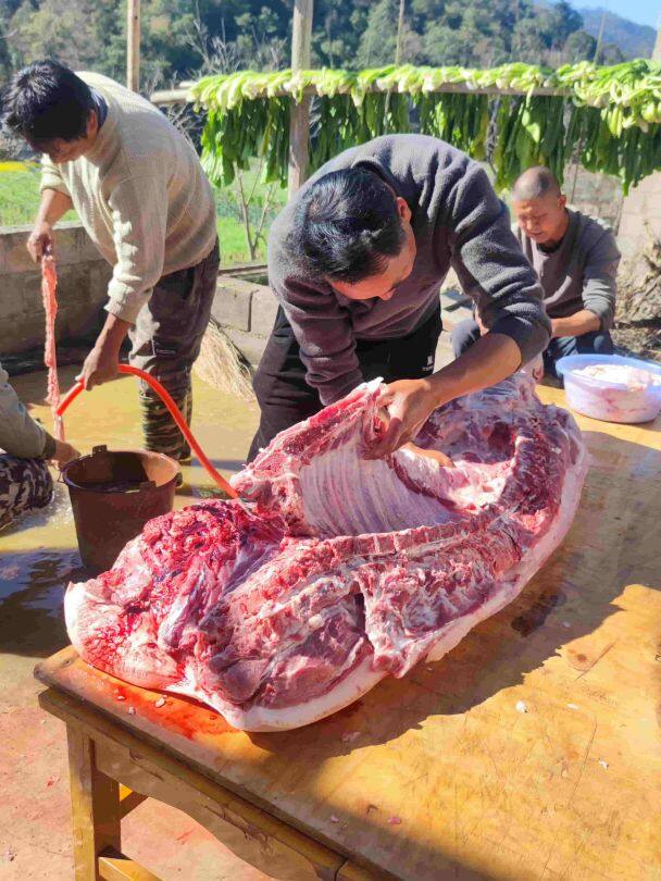 临近春节,红土高原上的村村寨寨仿佛被节气的钟声唤醒,一年一度的杀猪饭又热热闹闹地开了场。
