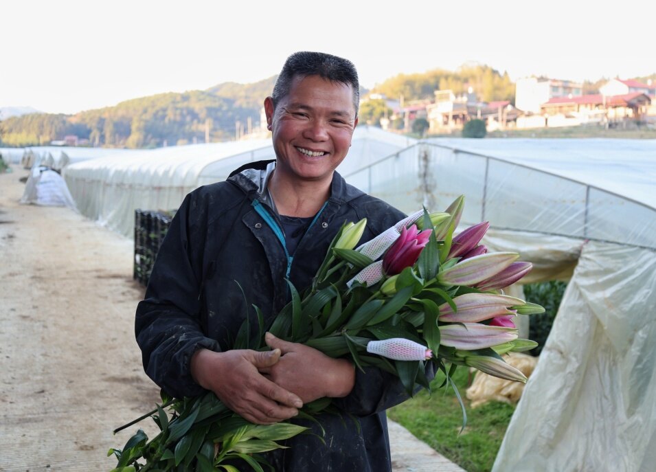 “这几天每天发出上千件货,大家从早忙到晚,心里却格外踏实!”站在田埂上,延平区花卉协会会长叶盛立望着眼前含苞待放的花海,笑容比冬阳更暖。这位当地知名的“百合专家”,从二十多年前的几亩试验田起步,将热爱耕耘成事业。然而,规模扩张的梦想曾一度受困于资金短缺。“2019年,想建大棚、引良种,到处都需要钱,周转真的难。”他回忆道。