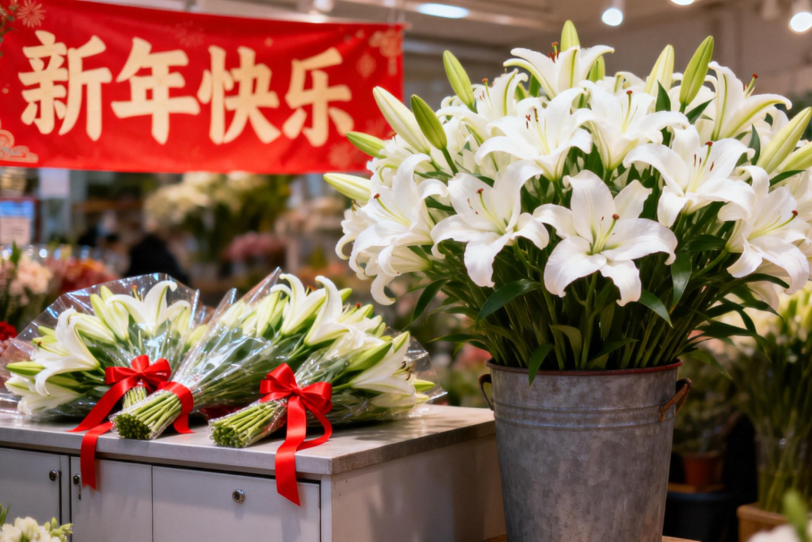 年关将至,人们总愿买一束鲜花,为家中增添一份生机与色彩。其中,亭亭玉立的百合因寓意“百年好合”,更承载着“百合百合 万事和合”的美好祝愿,成为装点年味、寄托情意的上佳之选。