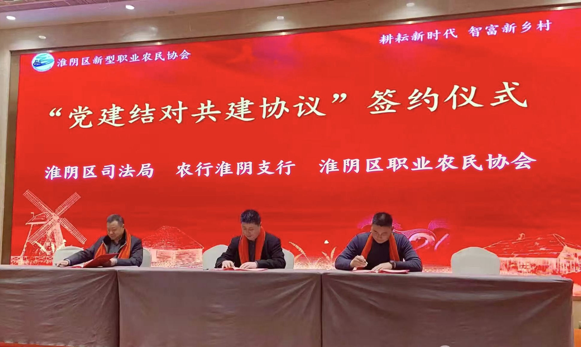 ● 2月1日,农行江苏淮安淮阴支行作为当地唯一参会金融机构,参与了淮阴区新型职业农民协会组织的“耕耘新时代 智富新乡村”主题会员大会,并与淮阴区司法局、新型职业农民协会共同签署了党建结对共建协议。(陆成之)