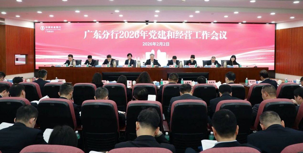 ● 2月2日,农行广东分行召开2026年党建和经营工作会议。会议明确了全年工作定位与发展目标,要求全行坚持“四个以”,做到四个“更加有力有效”,坚定不移走高质量、可持续发展之路。(王淼怡)