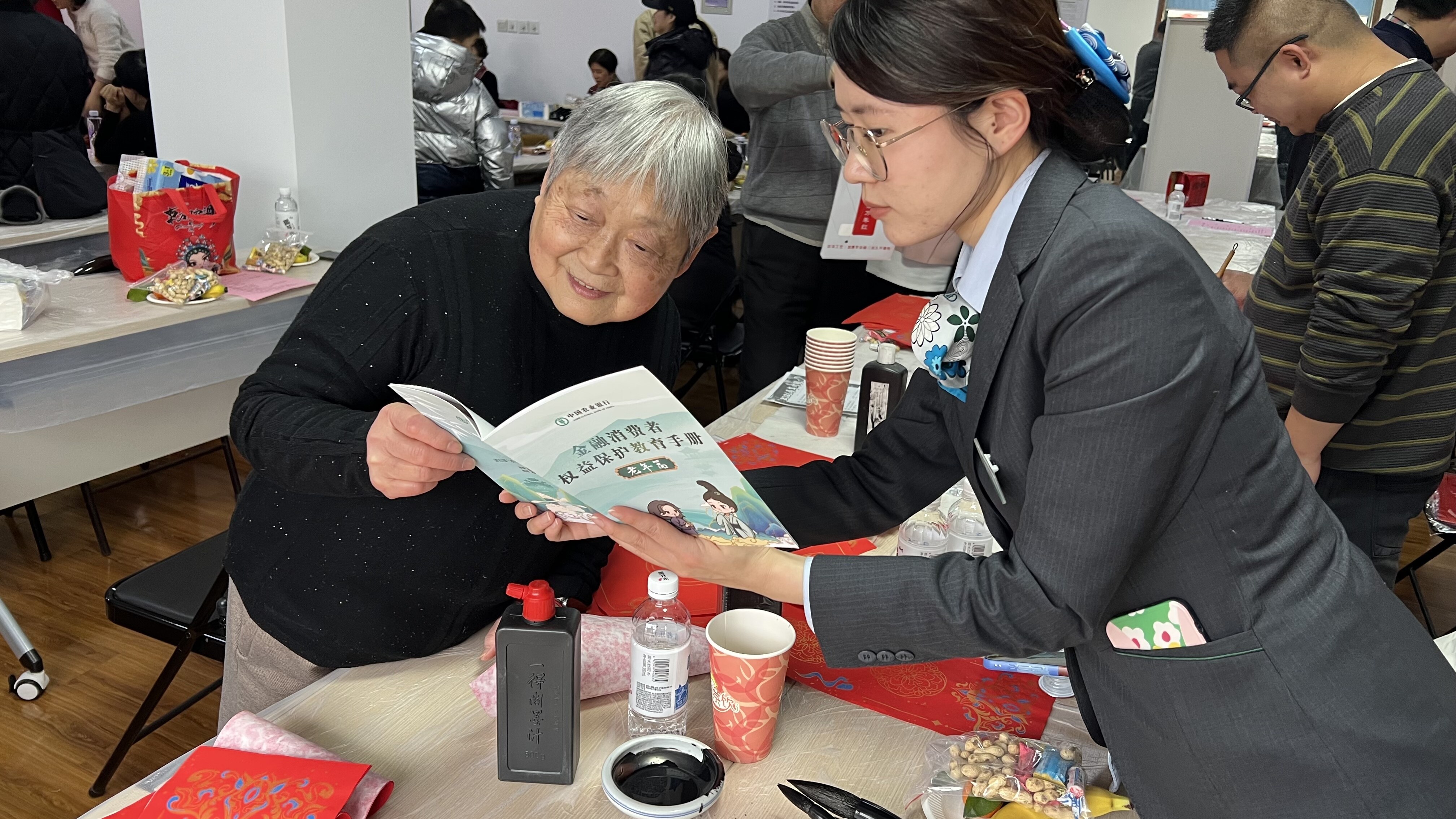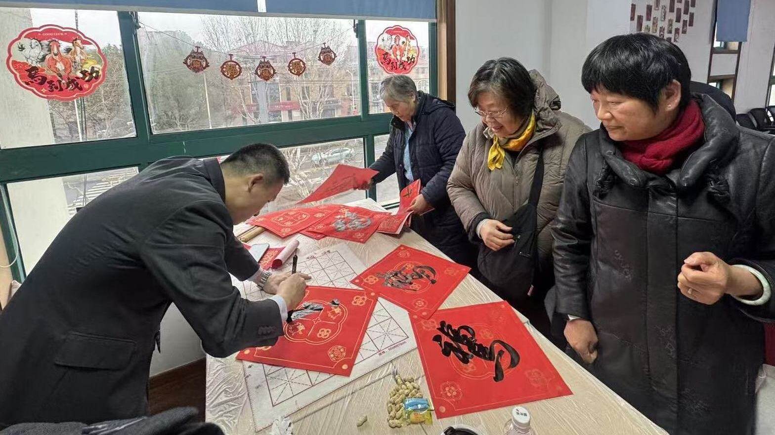 ● 2月6日,农行上海闵行贵都路支行与众众新家园共同开展新春送福联欢活动,为居民书写春联、赠送福字。(何东)