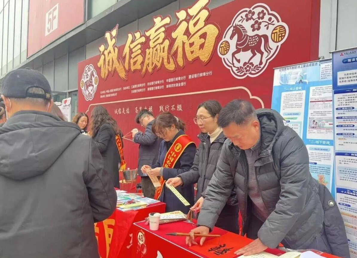 ● 2月5日,农行安徽蚌埠分行参加由人民银行蚌埠市分行、蚌埠市淮河社区共同举办的“诚信迎新春 征信伴我行”主题宣传活动,通过趣味互动,让征信知识“飞入寻常百姓家”。(黄明辉)