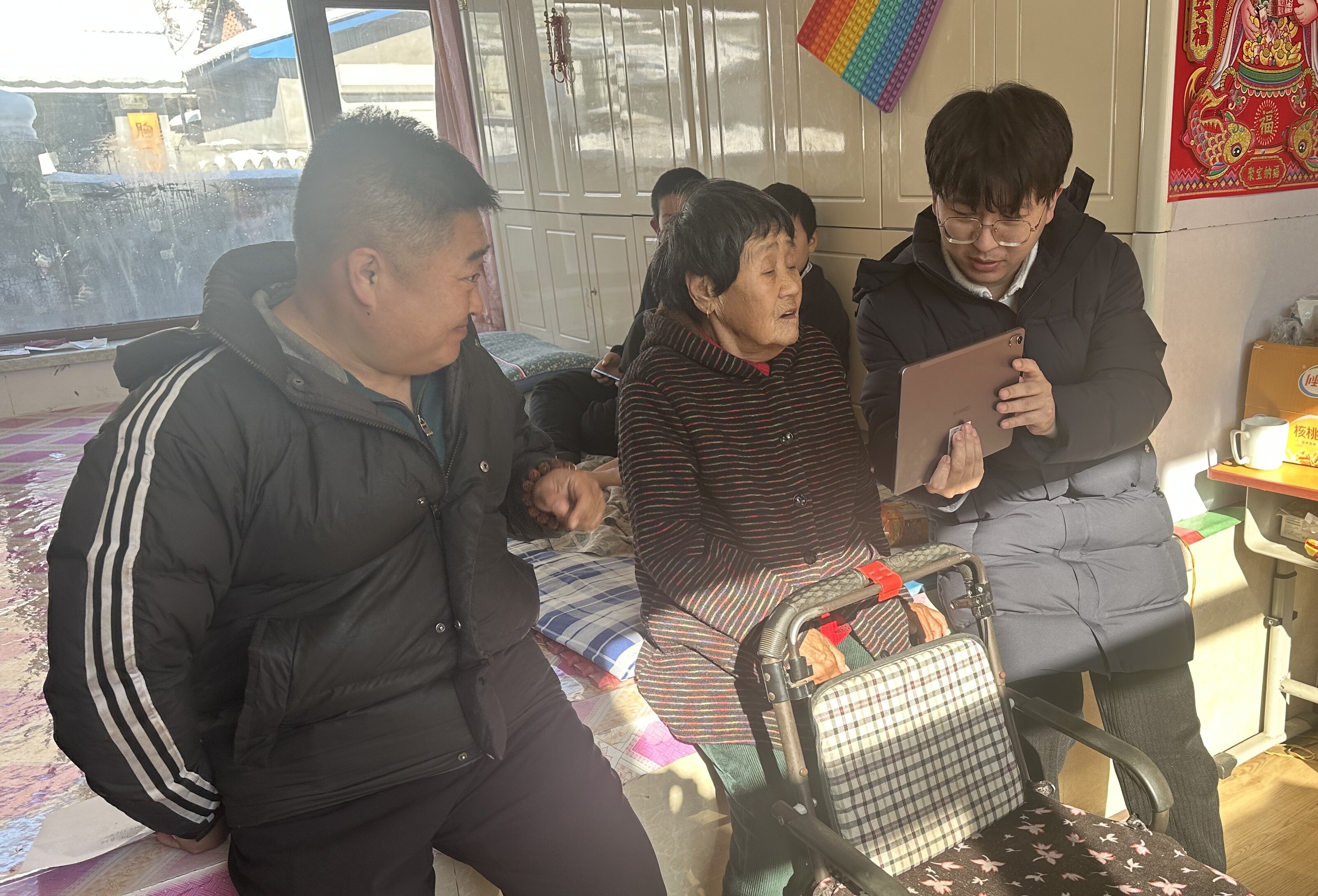 ● 2月6日,农行吉林省通化集安支行青年员工携带移动设备,驱车前往一位行动不便的老人家中,为其办理第三代社保卡。(郭晏彤)