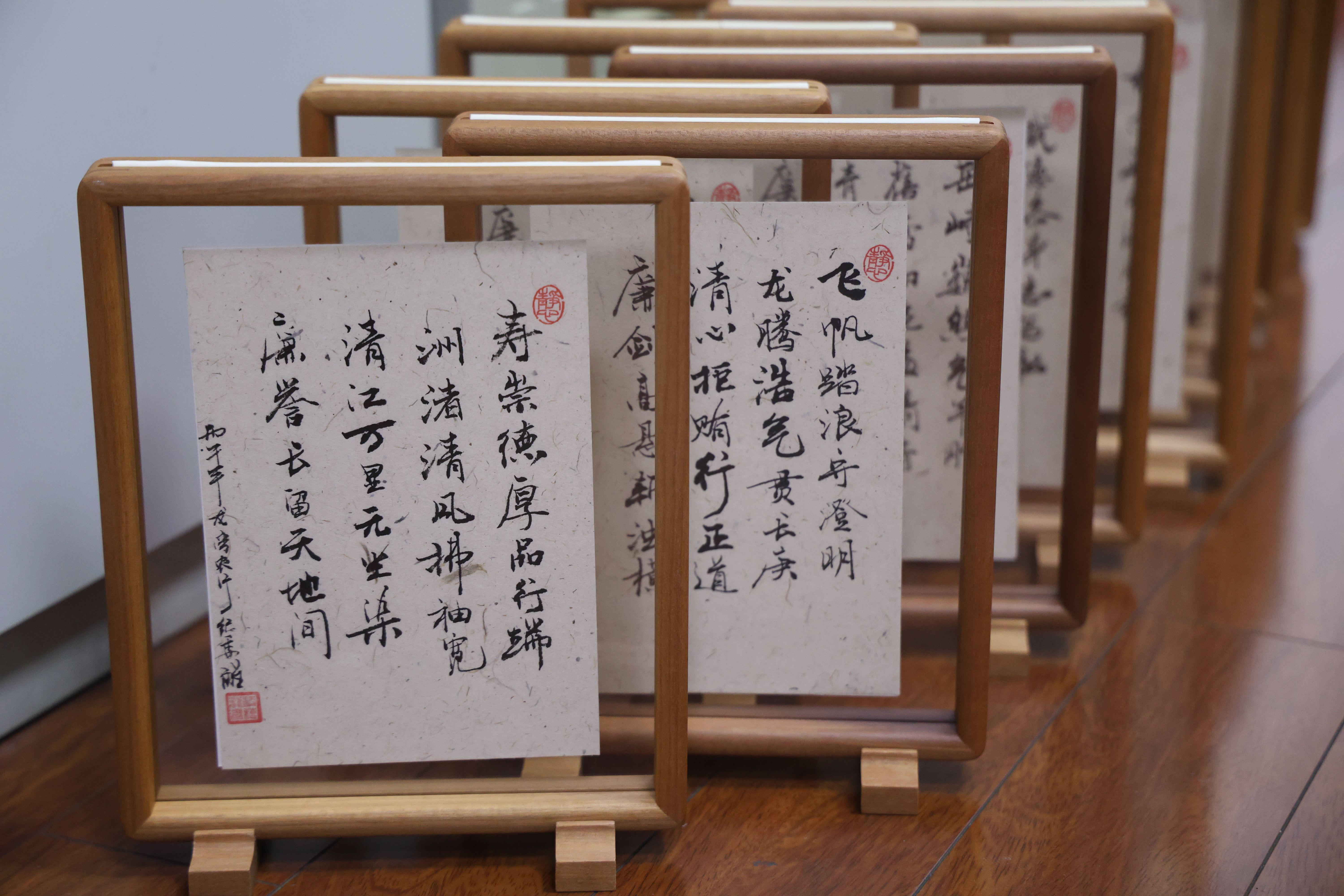 ● 近日,农行浙江温州龙湾支行自制廉洁书法摆台,将藏头诗融入干部员工姓名送“廉礼”,营造风清气正节日氛围。(吴成赫)