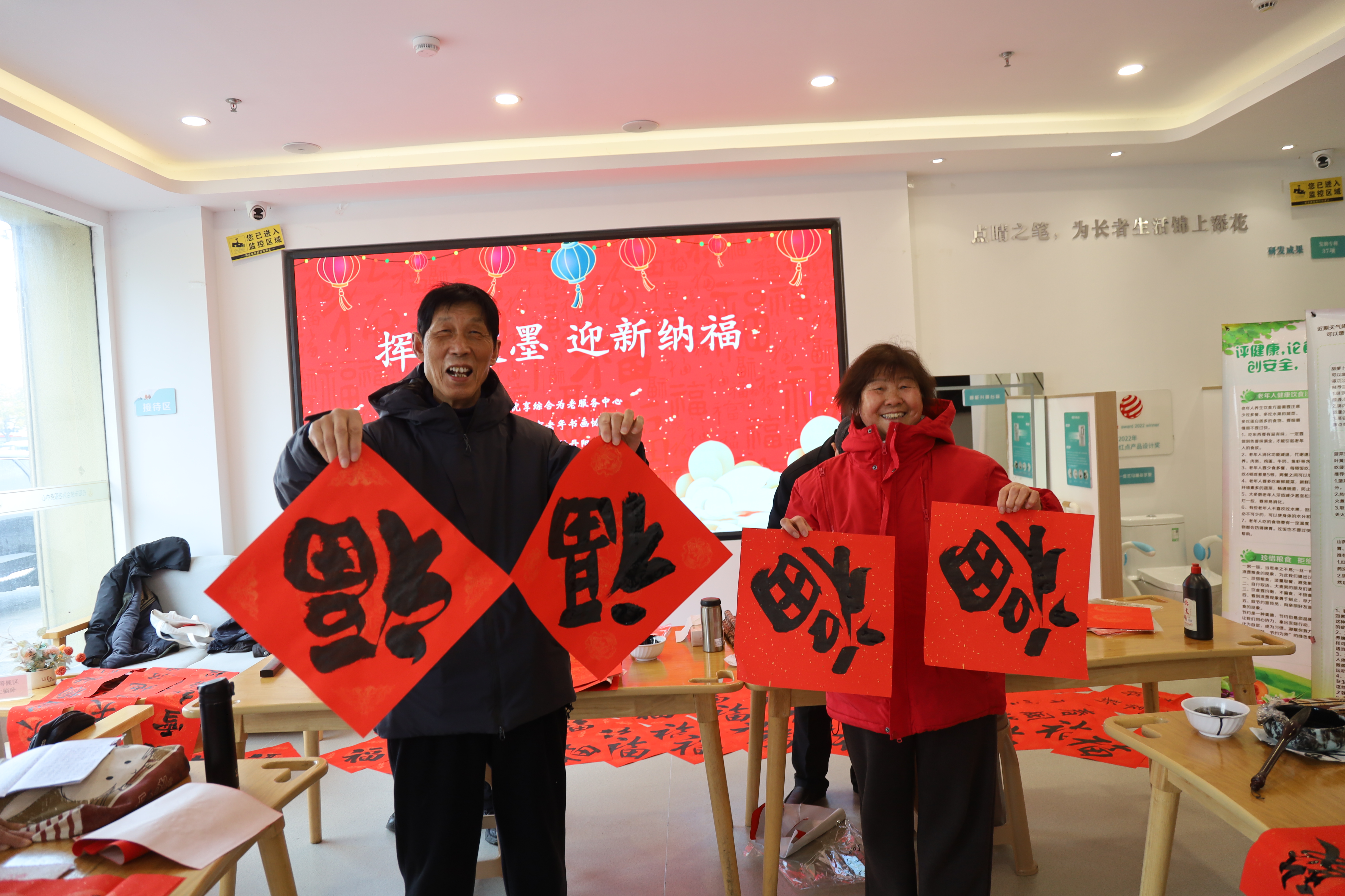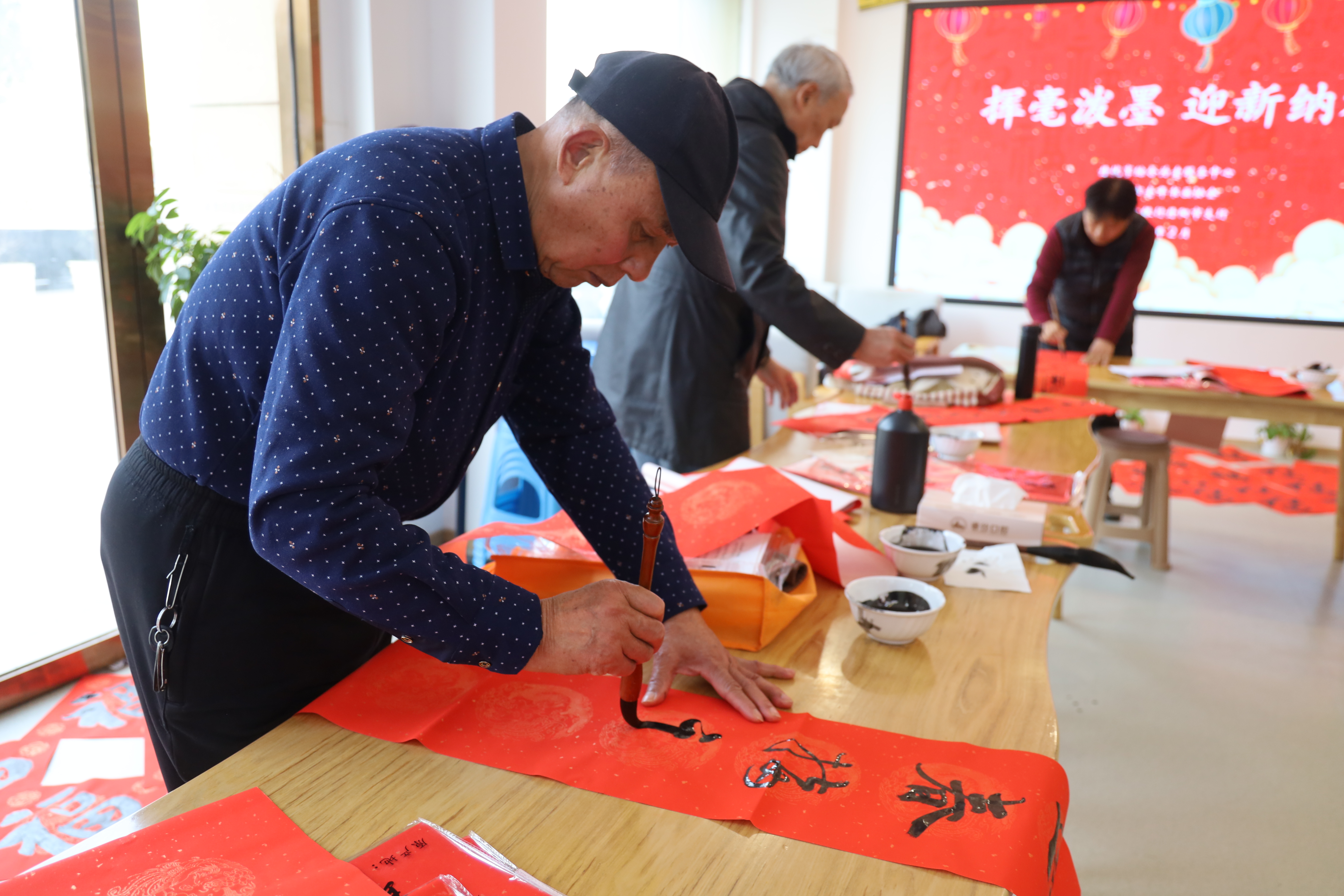 ● 2月4日,农行江苏丹阳支行志愿者联合丹阳市老年书画协会,走进丹优享综合为老服务中心社区,开展“挥毫泼墨 迎新纳福”迎新春活动,为居民书写春联和福字。(华元成)