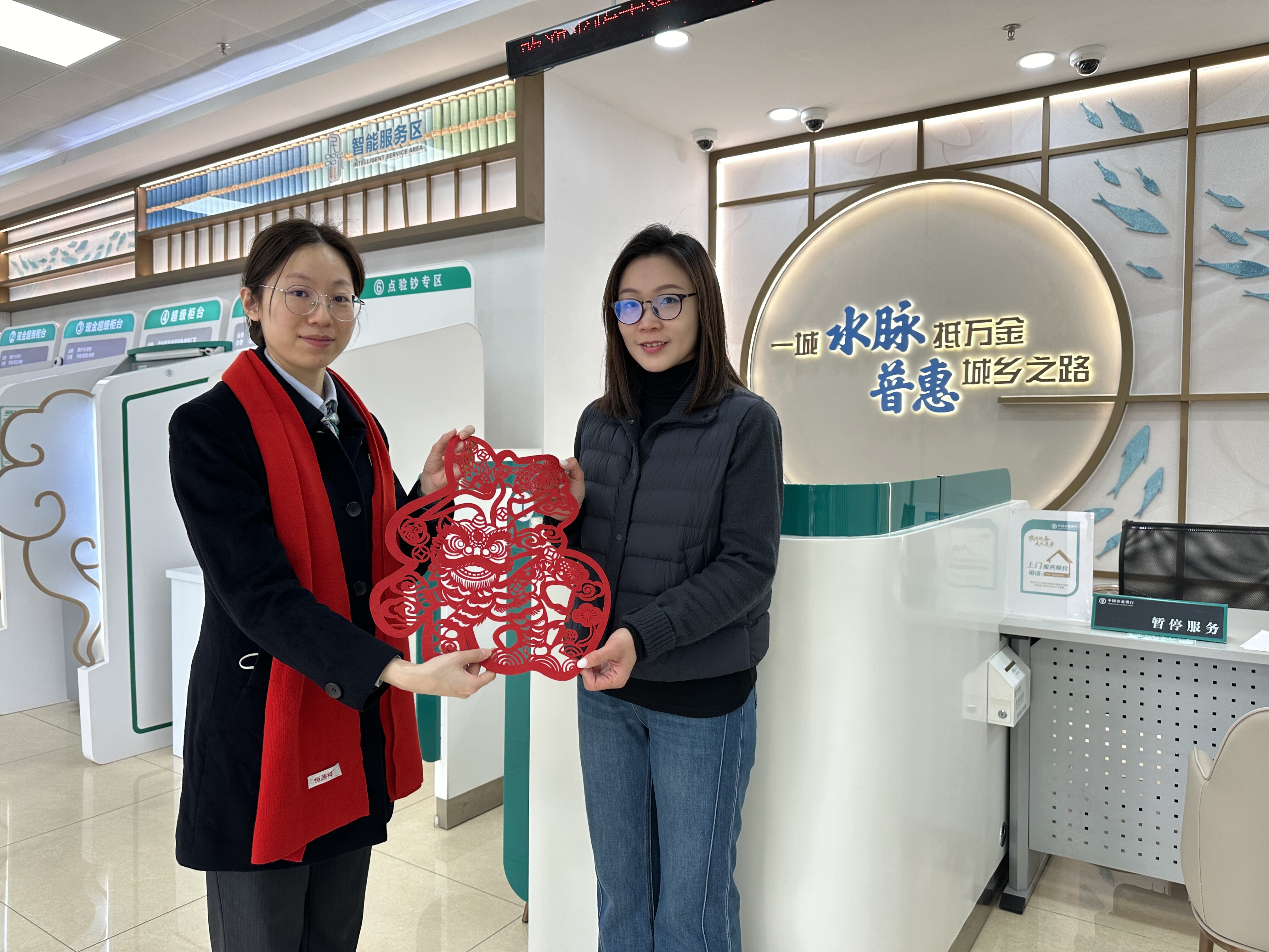 ● 近期,农行广东南海西樵支行开展剪纸送“福”活动,将精心剪制的福字赠予前来办理业务的客户。(梁绍标)