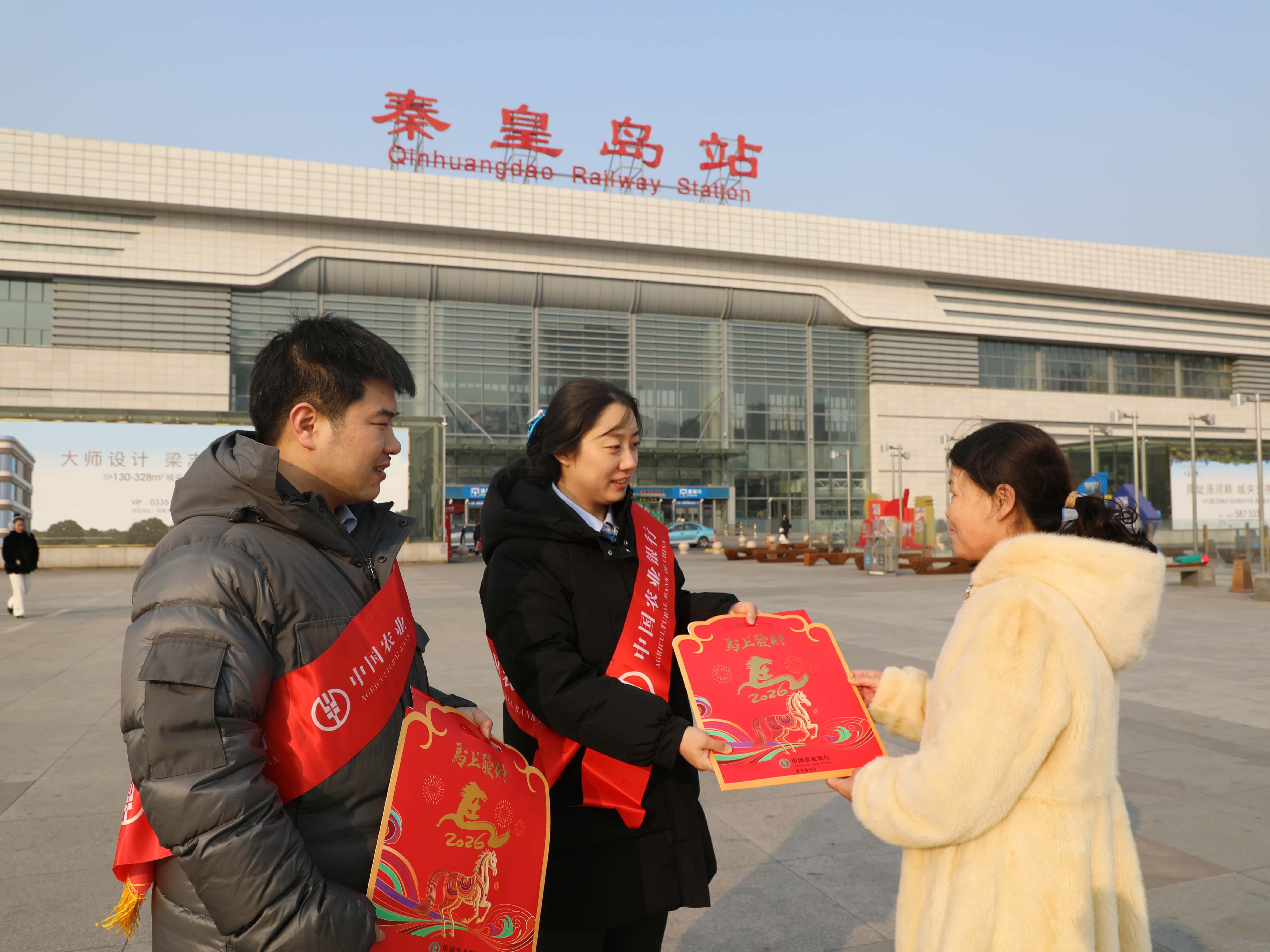 ● 近日,农行河北秦皇岛分行组织员工开展“三下乡”“春联送万家”“春运送福”等系列公益活动,将新春祝福送至港城百姓手中。(张艳明)