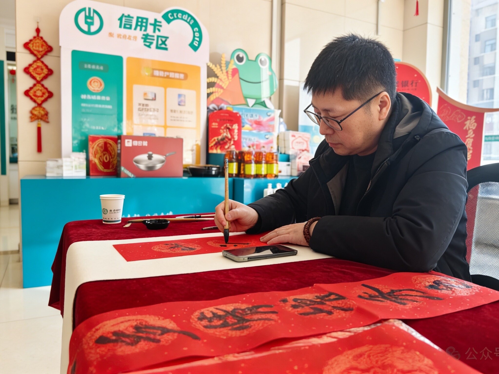 ● 2月11日,农行甘肃庆阳分行举办“笔墨凝香 迎春送福”活动,邀请书法爱好者现场题写春联、“福”字。(杨欢)