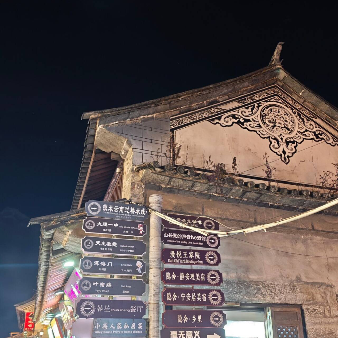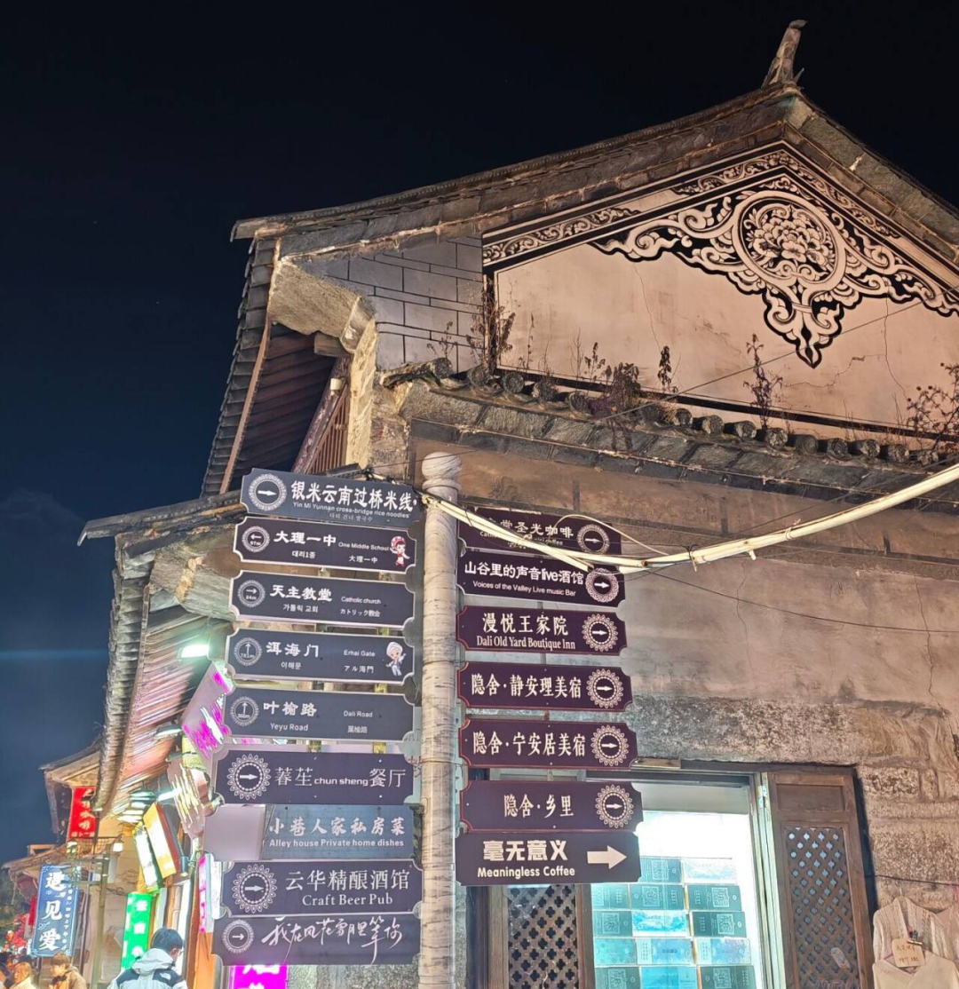 入夜后的大理古城,烟火气渐浓。人民路的巷子里,民谣酒馆透出昏黄温暖的灯光,吉他声与歌声轻轻飘出窗外,吟唱着这里的慵懒与自由。坐在木桌旁静静聆听,邻桌游客聊着旅途趣事,陌生的欢愉在空气中慢慢弥散。回程时抬头望去,青灰的屋檐上正挂着一轮明月,清辉洒满长街。这便是大理的夜,一半是风花雪月,一半是人间烟火。