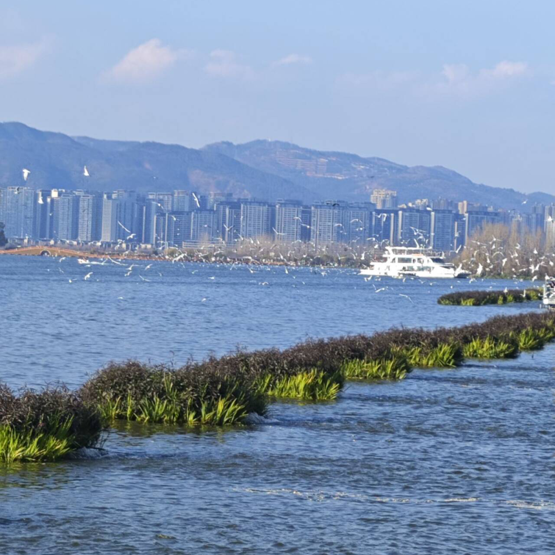 抵达昆明,首站直奔滇池。冬日的湖边,从西伯利亚飞来的红嘴鸥成群掠过水面,翅尖划开粼粼波光。远处,西山睡美人轮廓朦胧,城市楼宇在水天之间错落铺展。沿着湖岸漫步,游人举着鸥粮逗引飞鸟,清脆的笑声混着鸥鸣,成了昆明最鲜活的风景。