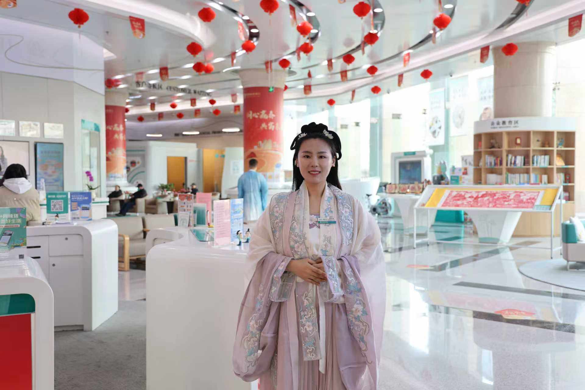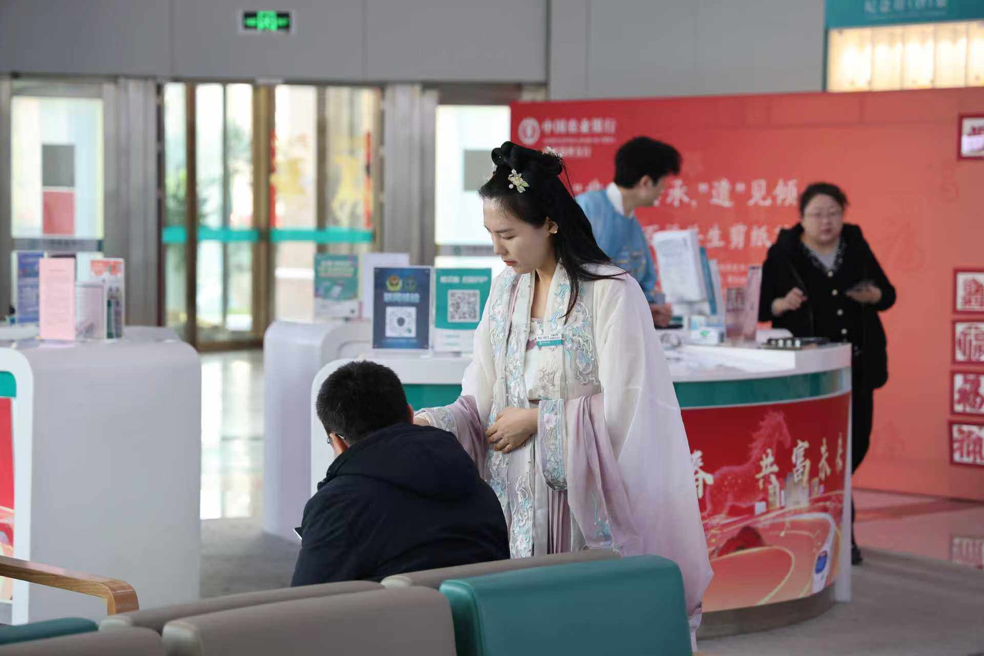 ● 2月13日起,农行山东济南银河支行创新推出“穿汉服 品宋韵 扬文化”主题活动。每周五,员工身着合规汉服,在办理业务之余向客户介绍汉服文化及宋韵典故,让金融服务与传统文化沉浸式融合。(马金星)