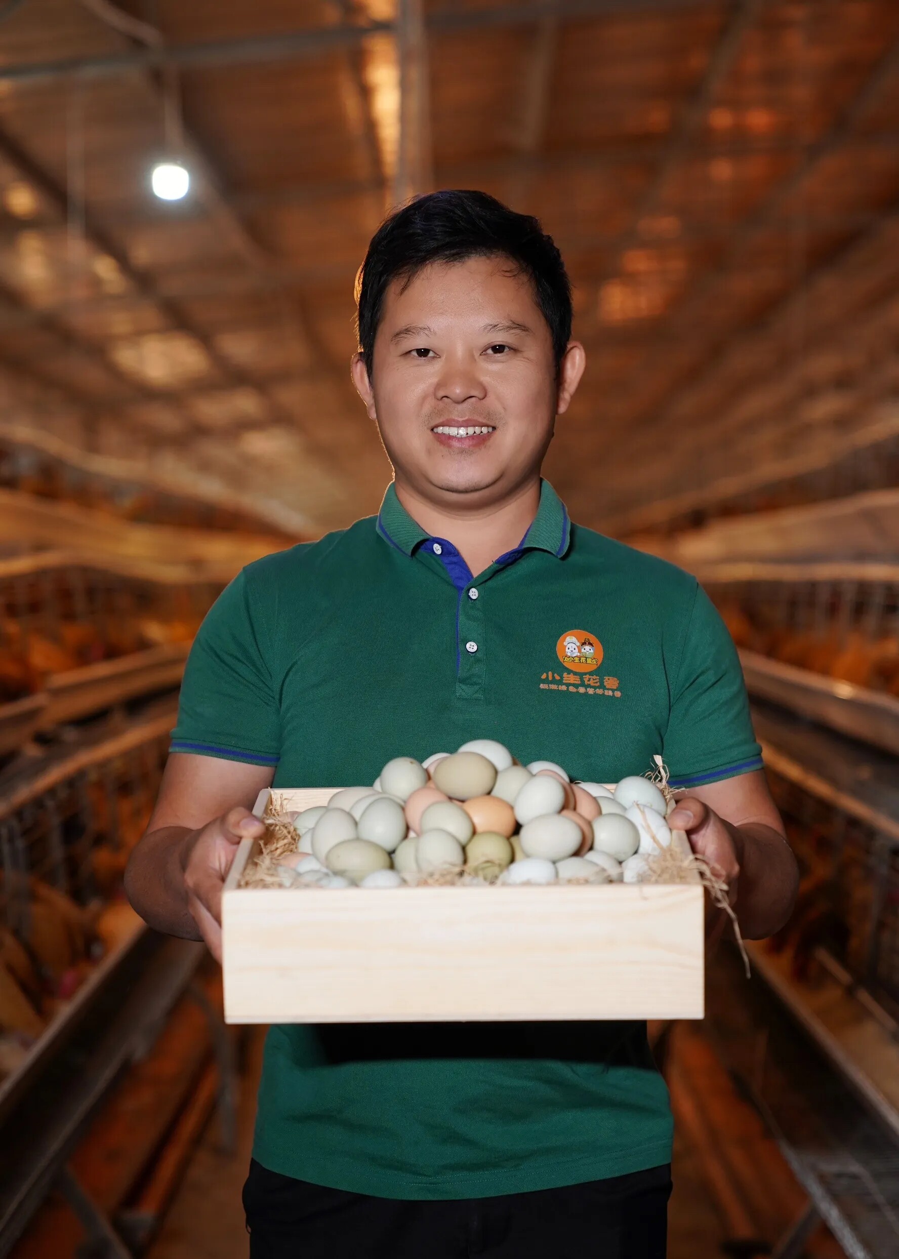 谢汝朋是一名返乡创业的大学生,2016年底成立阳春市中雁生态农业有限公司,创办第一家绿壳蛋鸡养殖场。2019年起,他通过股份合作和“公司+农户”方式与有意愿的乡亲共建小生花蛋生态农场,带动周边村民参与产业发展,实现共同富裕。
