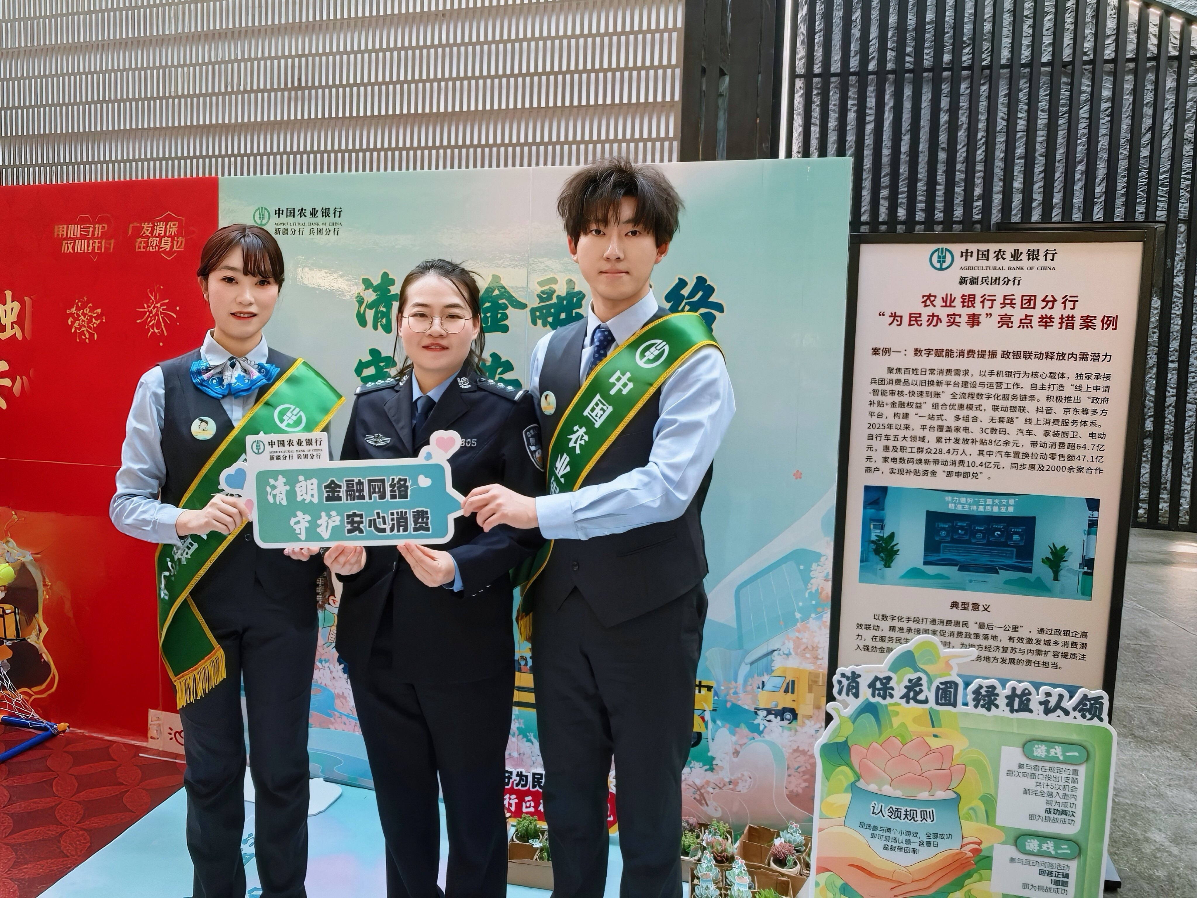 ● 近日,农行新疆兵团分行组织辖内各分支行因地制宜开展“消保面对面 服务零距离”主题金融消保宣传活动,深入企业、校园、社区普及金融消保知识。(张小雨)
