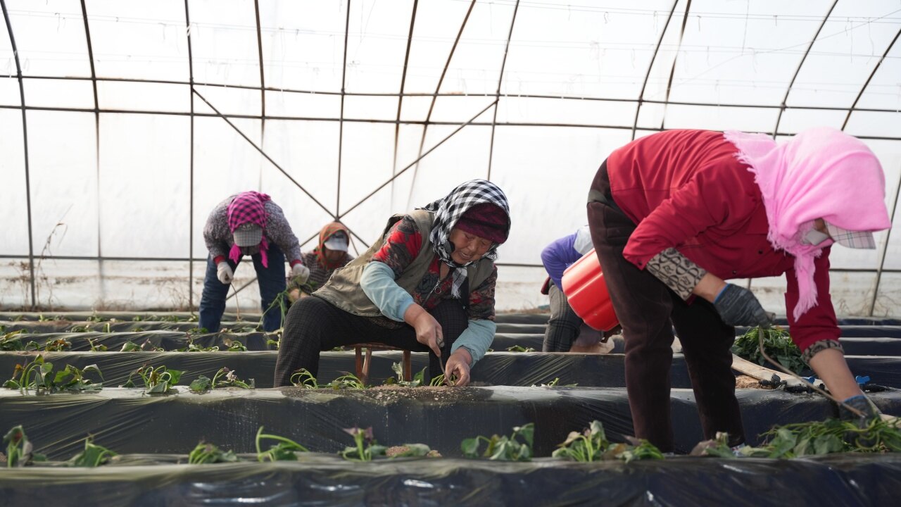 惊蛰刚过,山东滨州沾化区下河乡的盐碱地大棚里,已是一派人声鼎沸的春耕景象。今年的主角,依然是红薯。选种、排薯、覆沙、盖膜,一颗颗饱满的种薯被小心翼翼地安顿在育苗床上,在恒温恒湿的环境下,静待破土而出,孕育着新一年的丰收希望。