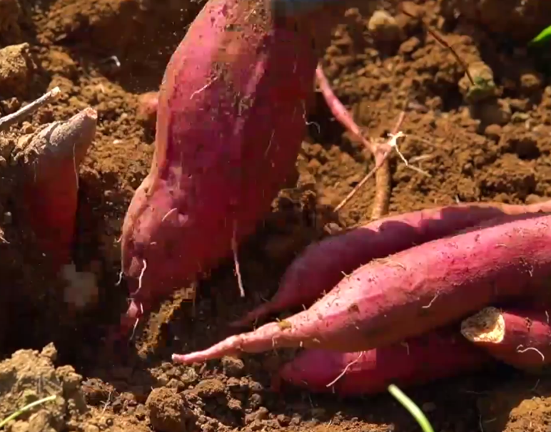 ▲刚刚拔出土的红薯。