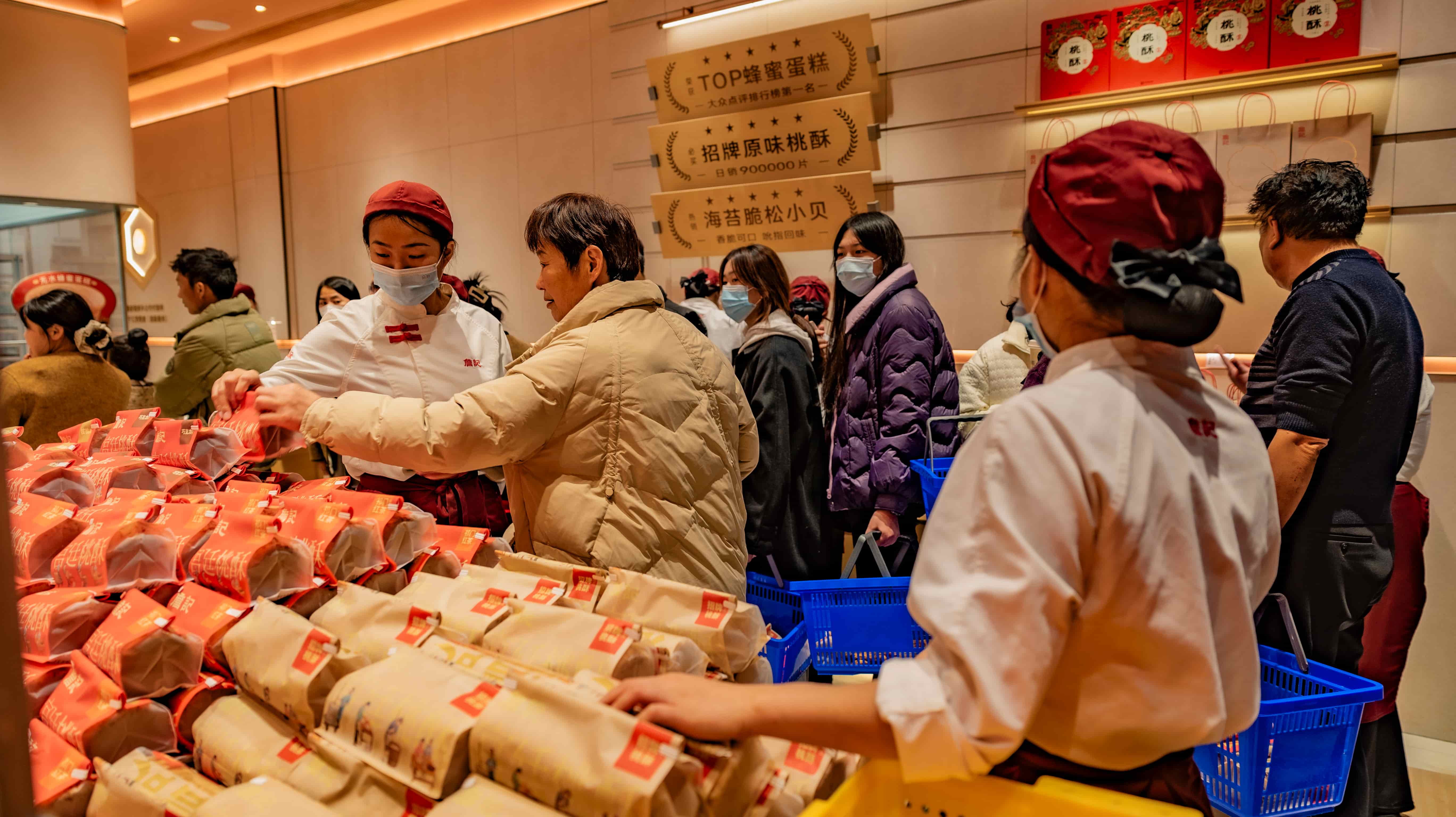 ▲詹记桃酥店内,游客正在选购商品。