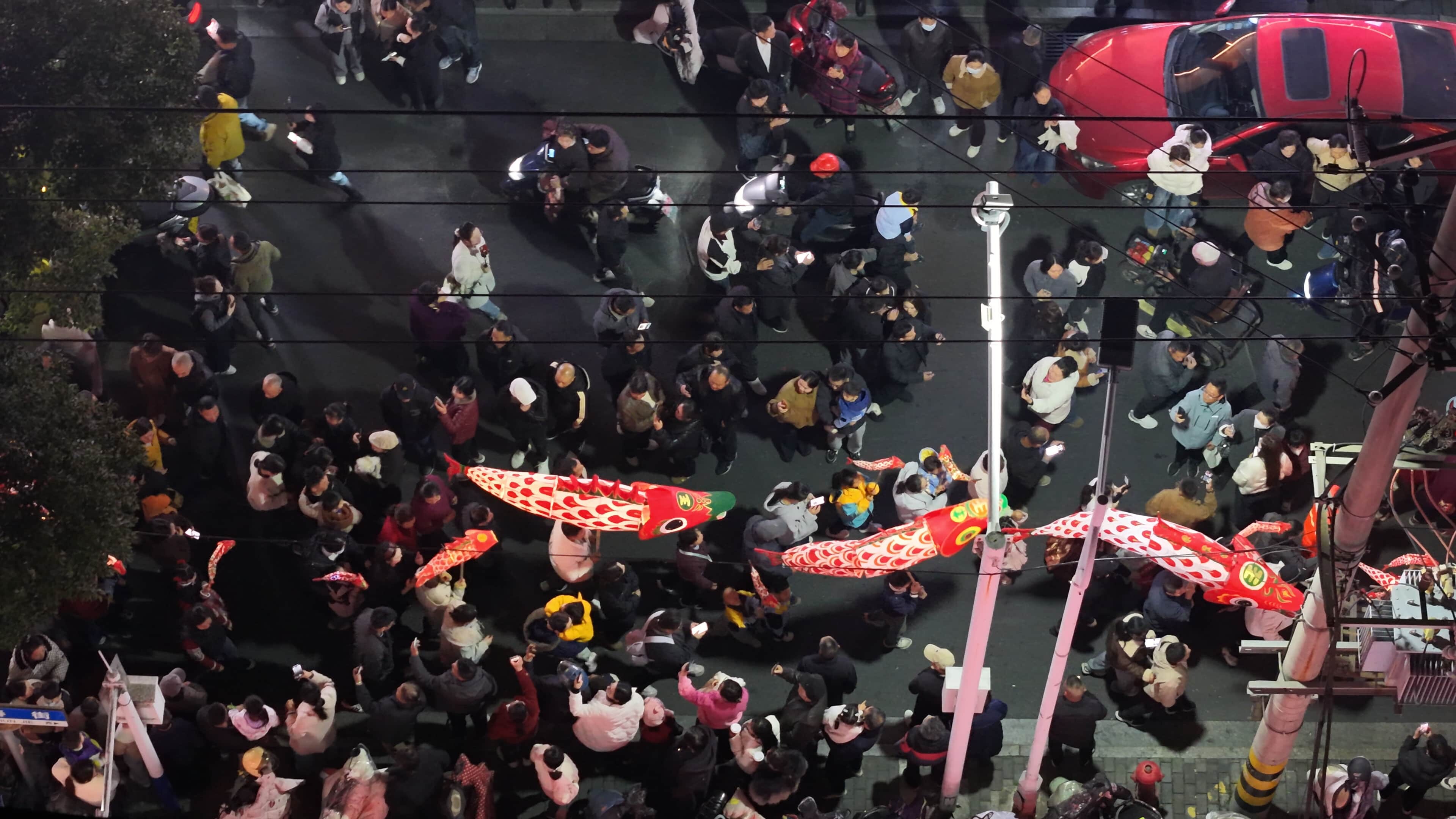 ▲迎春街鱼灯巡游。
