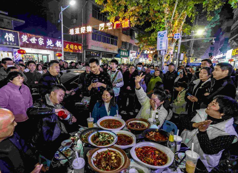 ▲游客聚集在一起吃炖锅。