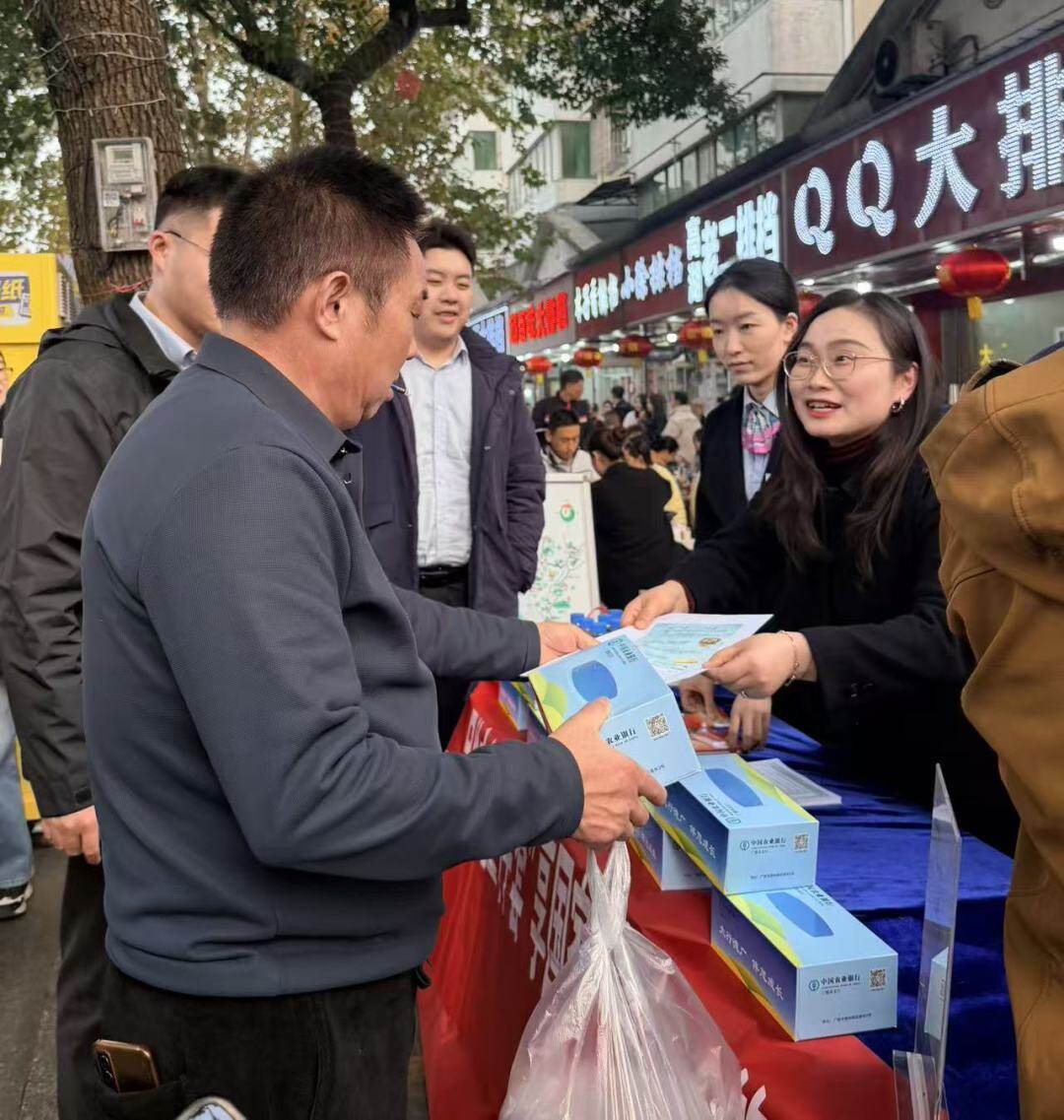▲农行工作人员在街头宣传反诈知识。