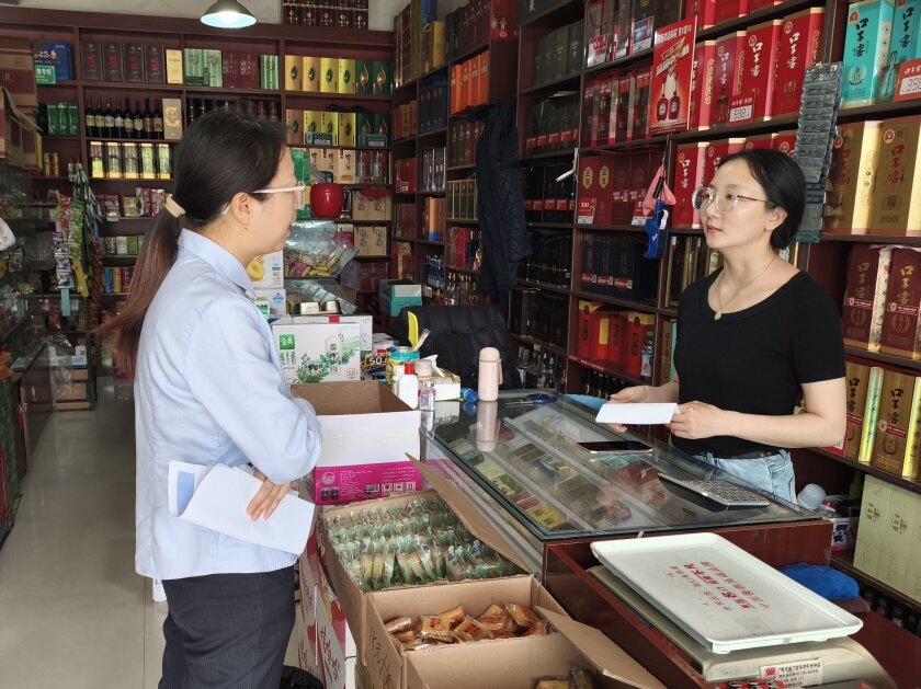 ▲农行工作人员了解周边店铺金融需求。
