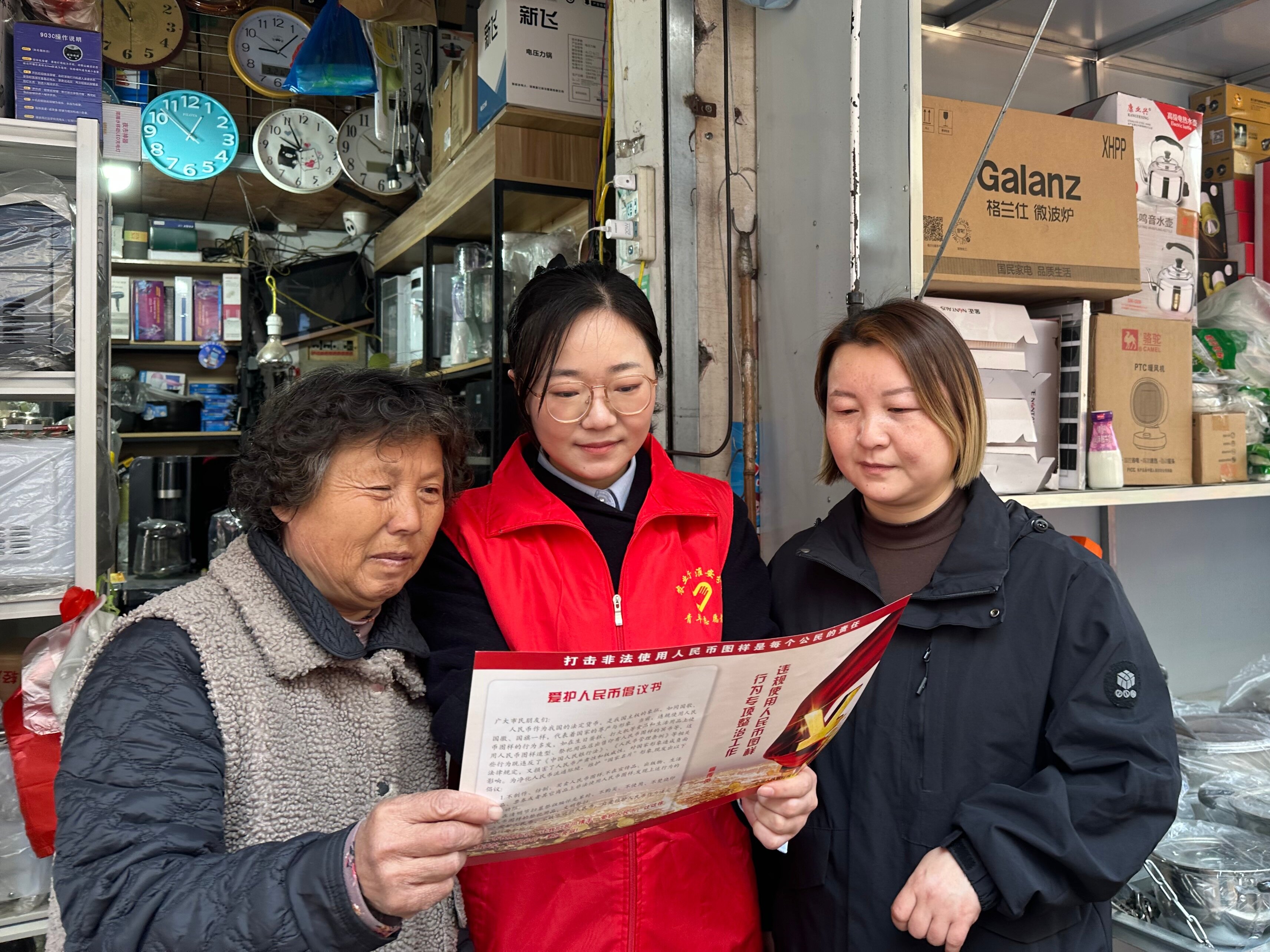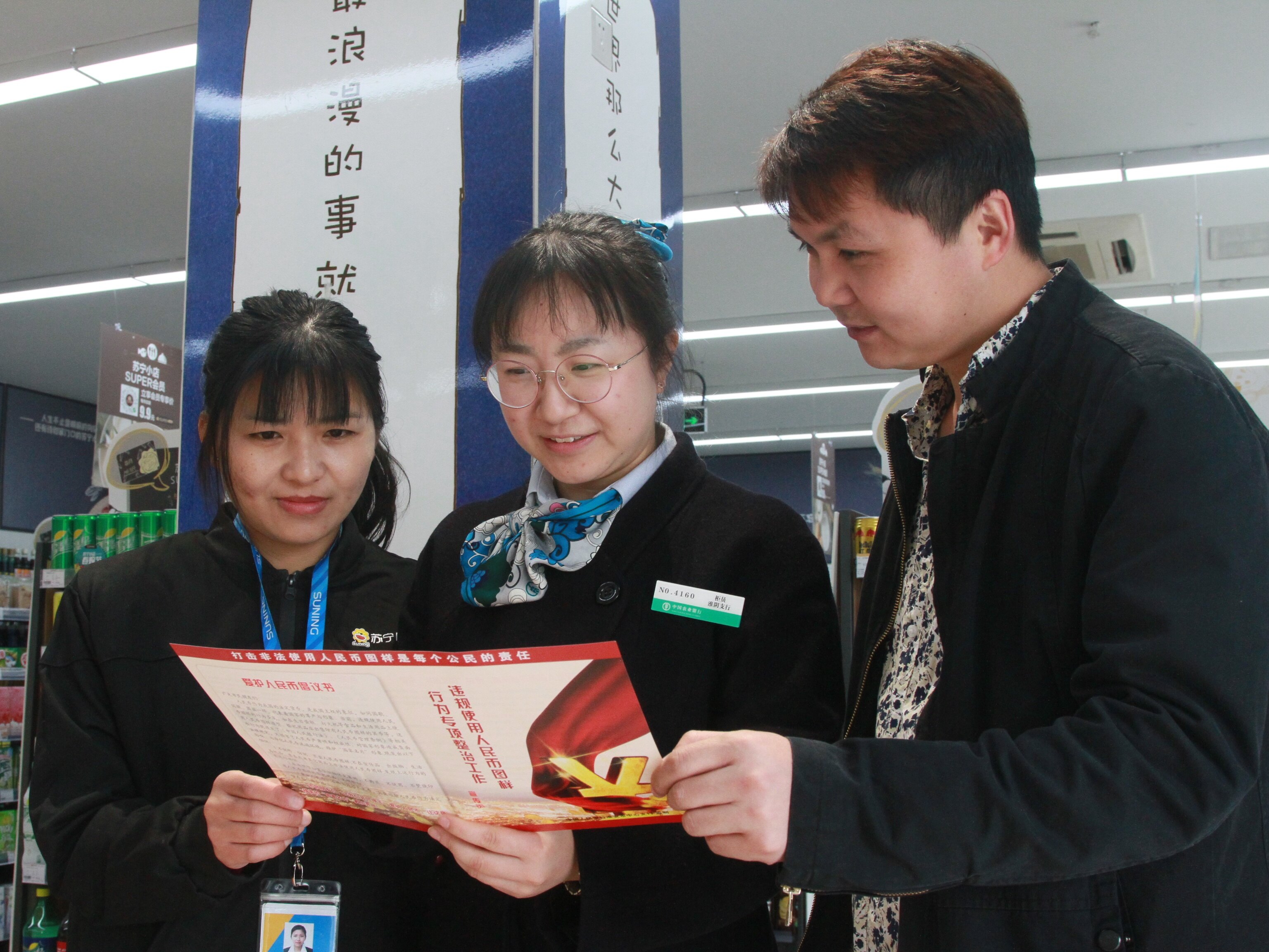 ● 3月24日,农行江苏淮安淮阴支行组织青年志愿者走进市场、商户、社区等场所,开展人民币图样使用管理专项宣传活动。(陆成之)