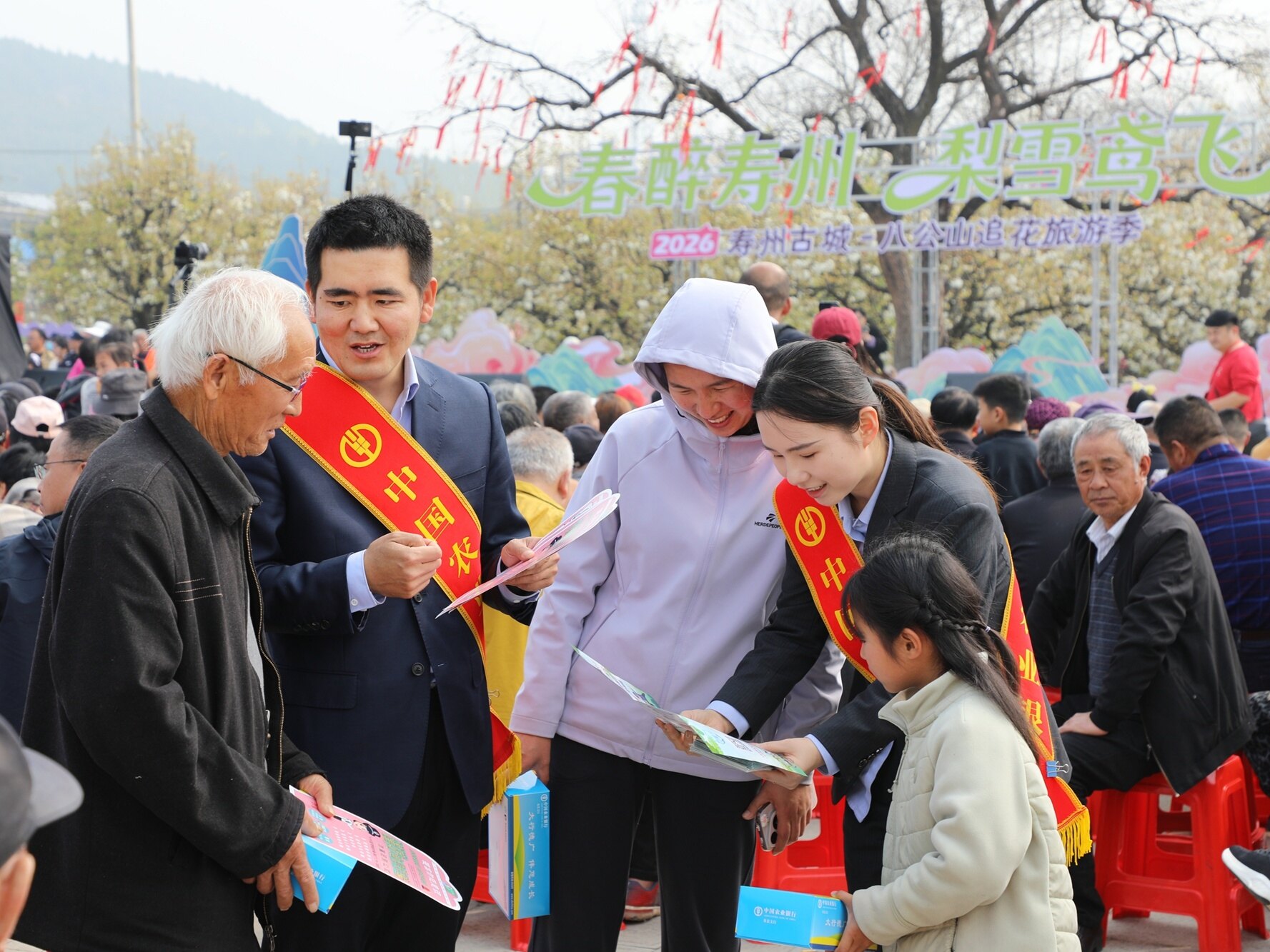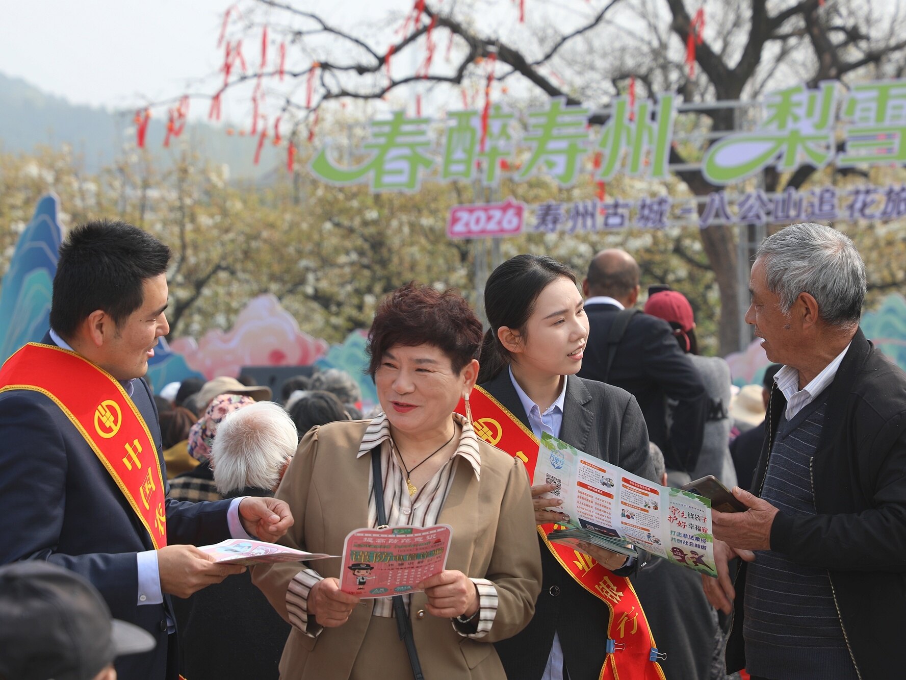 ● 4月1日,农行安徽淮南寿县支行积极参与“春醉寿州・梨雪鸢飞”2026寿州古城八公山追花旅游季活动,工作人员向游客发放宣传手册,普及金融反诈知识。(宫传奇)