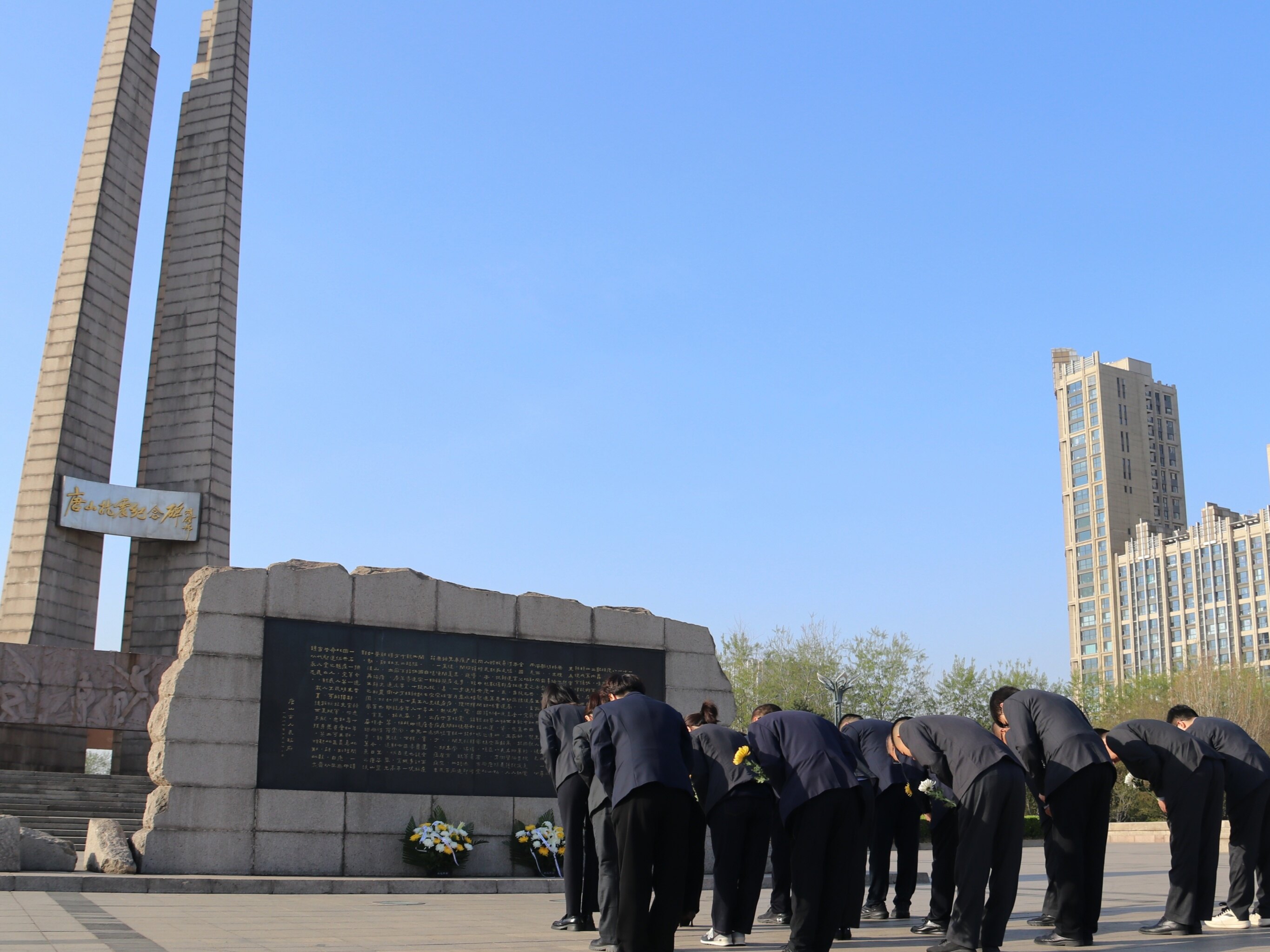 ● 4月1日,农行河北唐山丰南支行组织党员干部、员工代表,赴唐山抗震纪念碑开展主题祭扫活动。(刘彩云)