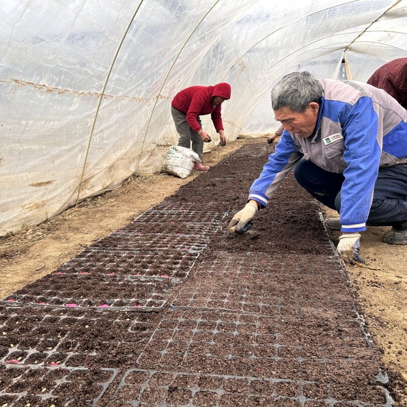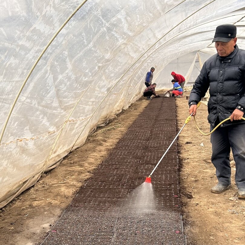 第三步:穴盘“安家”25天。催芽完成后,育苗前还需要一到两天的准备工作,调整基质水分、布置穴盘。播种完毕后,用育苗土均匀覆盖穴盘,再用刮板轻压刮平,让种子与基质紧密贴合。整个育苗周期维持在25天左右,确保培育出的种苗纯度高、出苗率达标。