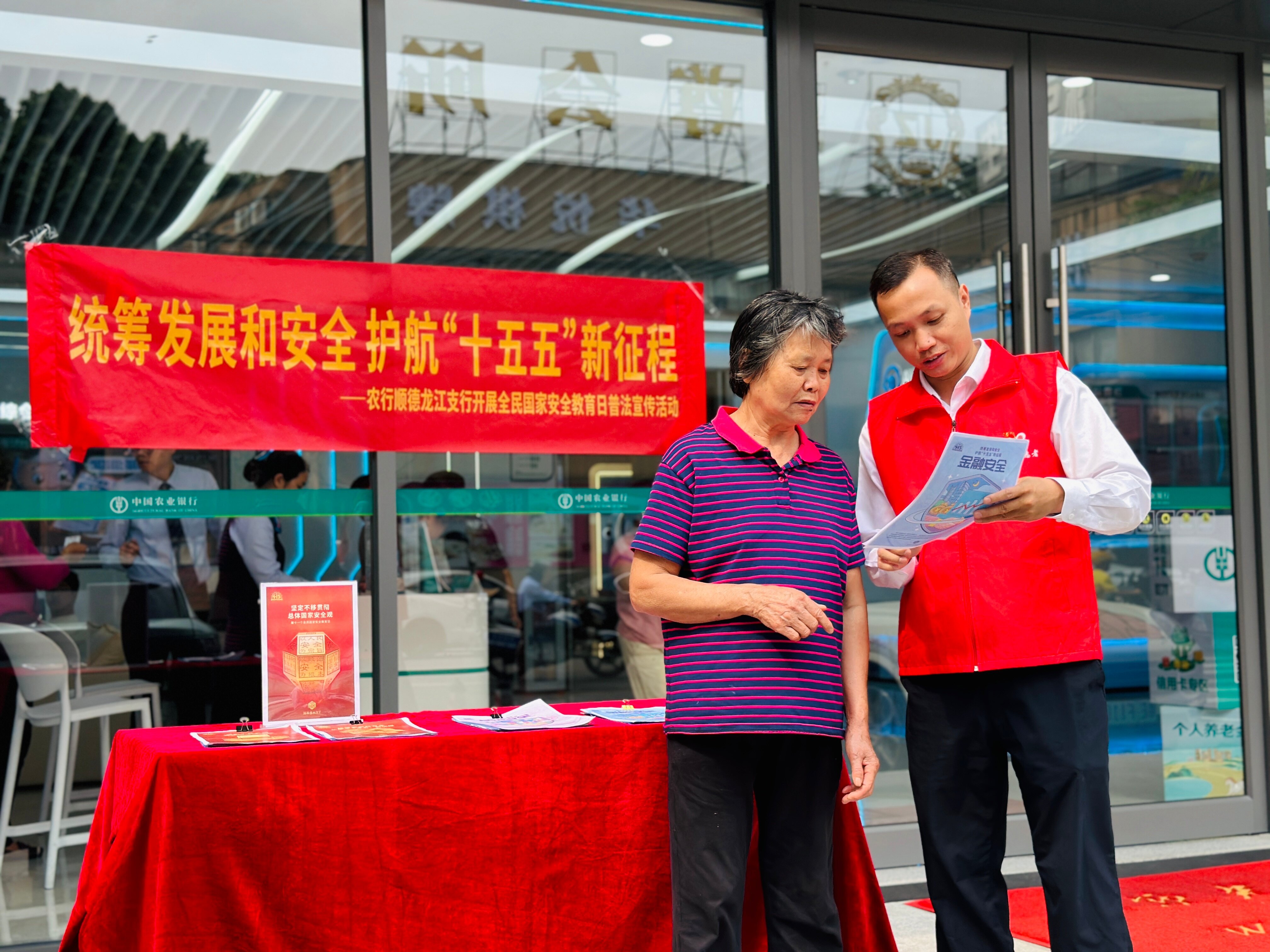● 近日,农行广东顺德龙江支行组织开展“全民国家安全教育日”普法宣传活动。该行通过发放宣传折页、设立咨询台等形式,向群众普及国家安全知识。(蔡永珍 吴楚琪)