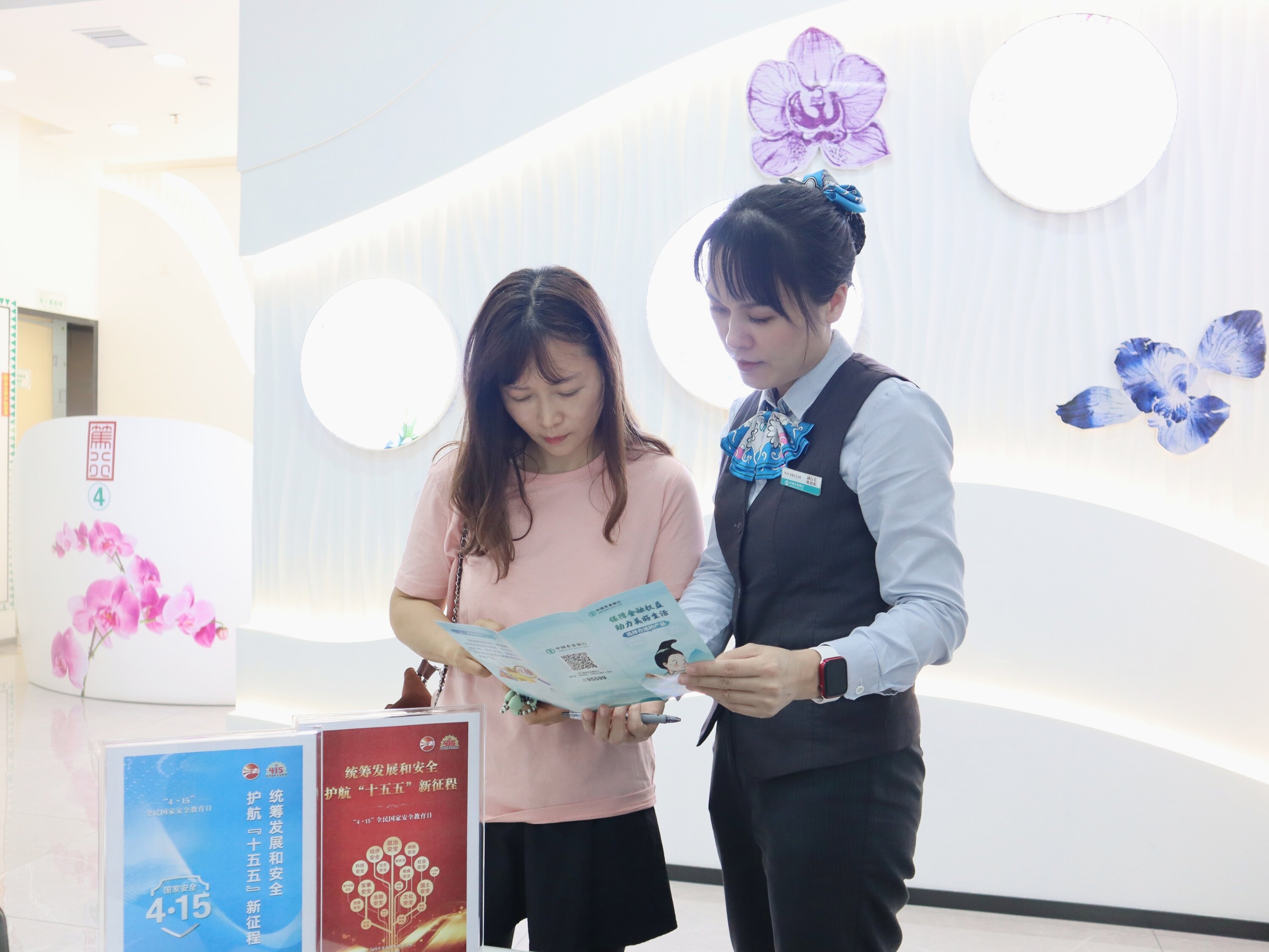 ● 4月10日,农行广东顺德分行开展全民国家安全教育日主题宣传活动,通过在网点摆放资料、播放标语,现场讲解等方式,向群众普及安全知识。(何洁梅 陈林曼)