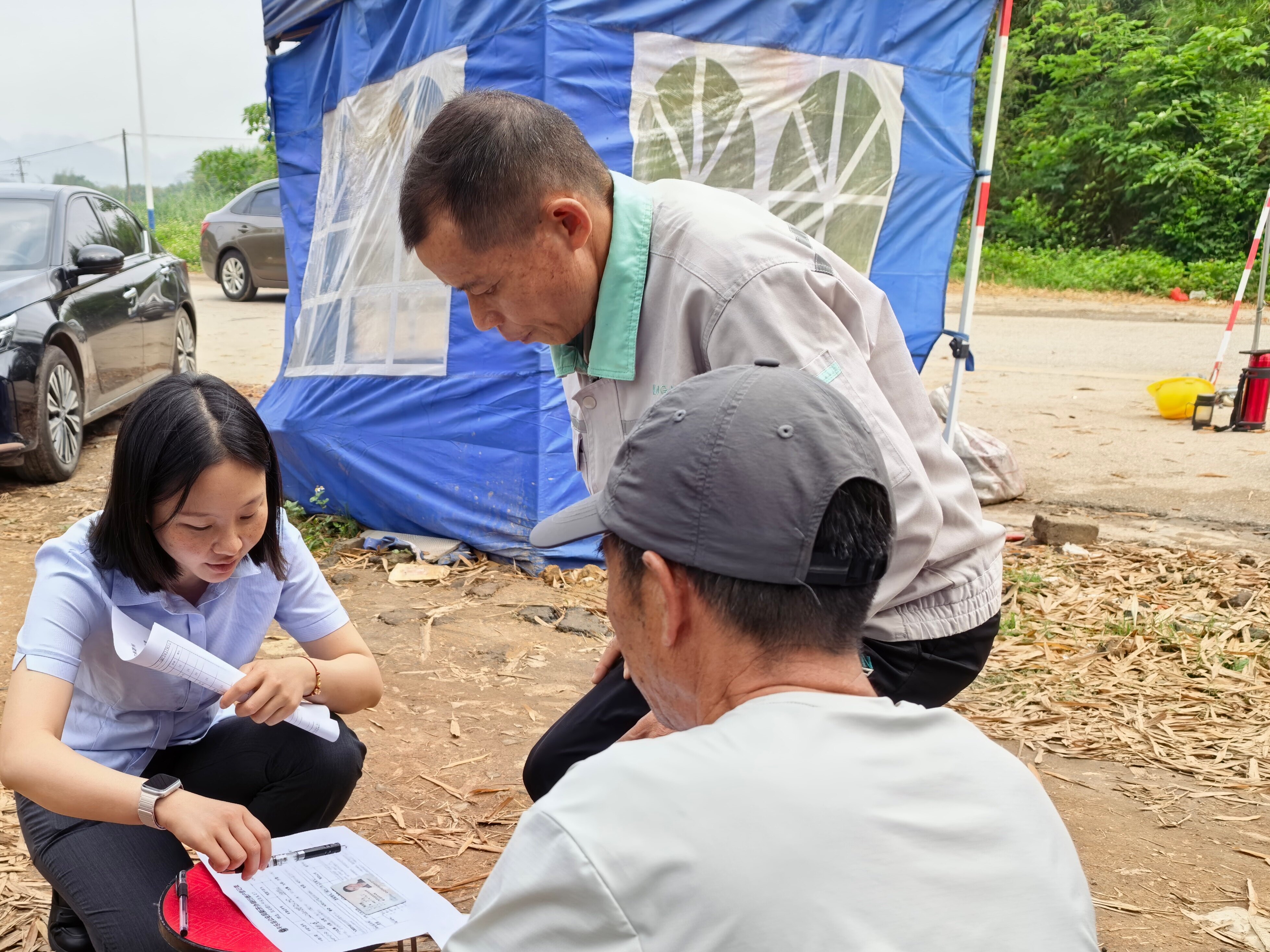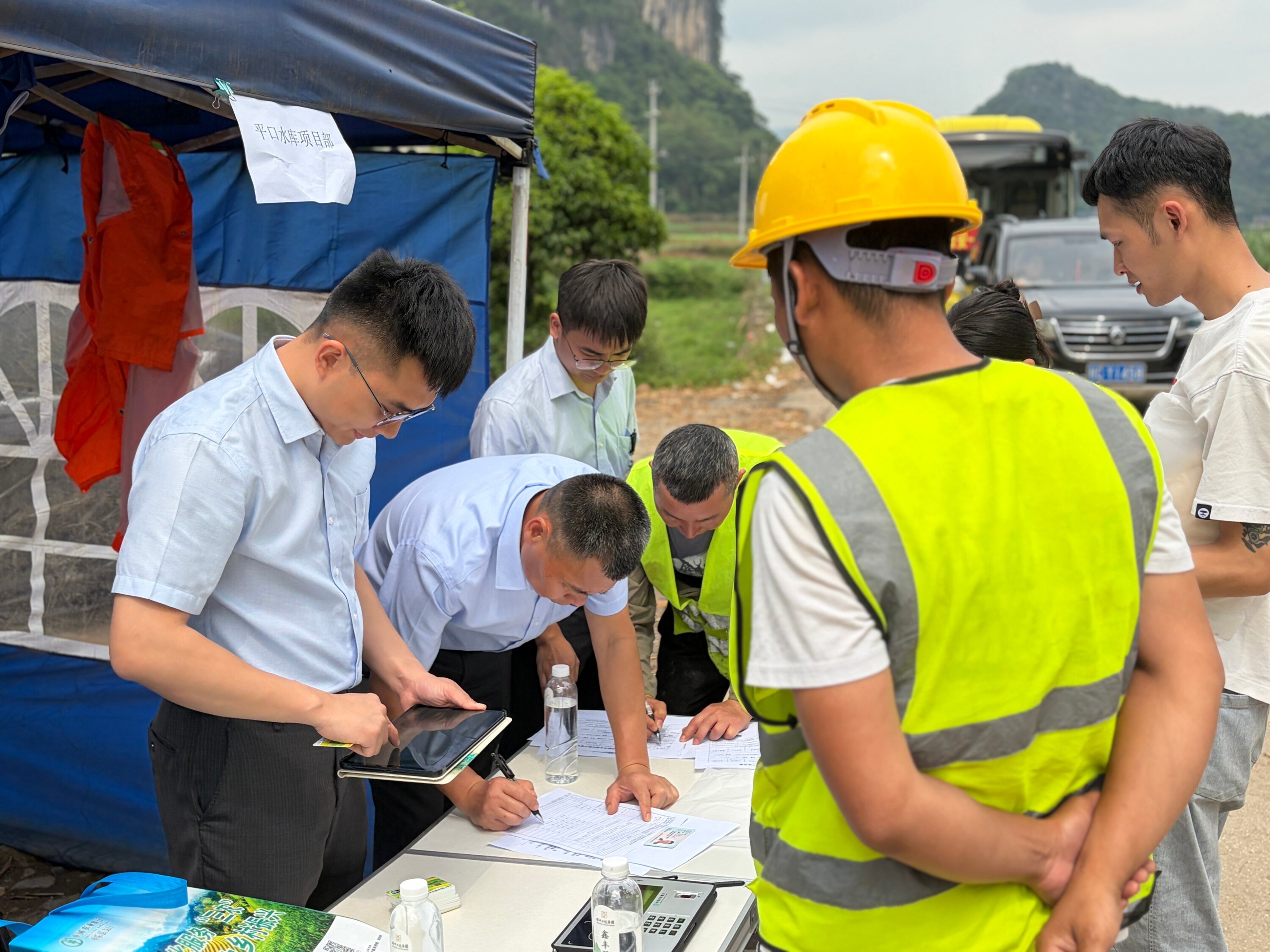 ● 4月13日,农行广西桂林平乐支行组织工作人员走进平乐县平口水库引(调)水工程项目现场,为农民工提供“一站式”金融服务。(伍文悄 蒙萍)