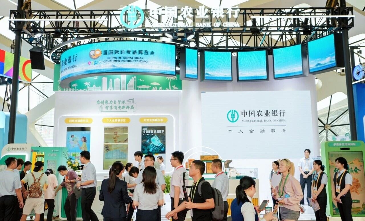 ● 4月13日,第六届中国国际消费品博览会在海南海口开幕。农行紧扣“支付便利、服务高效、保障有力”目标,围绕“农情聚力自贸港 智享消费新格局”主题,打造集科技感、互动性、专业性于一体的专属展位,推动金融服务与消费场景深度融合。