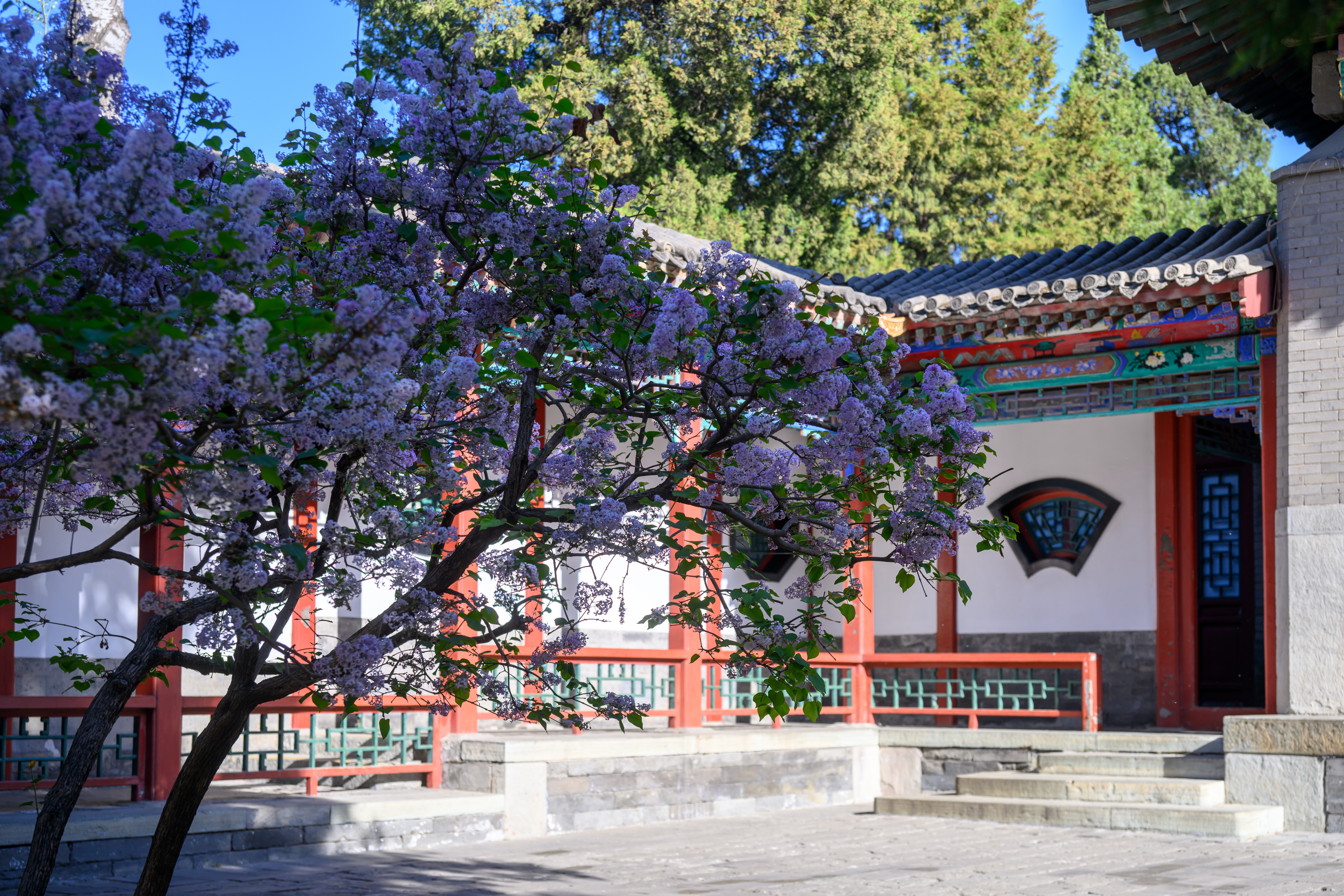 北京北海公园的春天,是红墙与繁花的唱和,美得从容悠然。琼华岛旁桃花粉白成片,五龙亭边连翘缀满枝条,快雪堂里丁香吐露芬芳。垂柳拂岸,碧波荡漾,一步一景,满园春色让人沉醉流连。