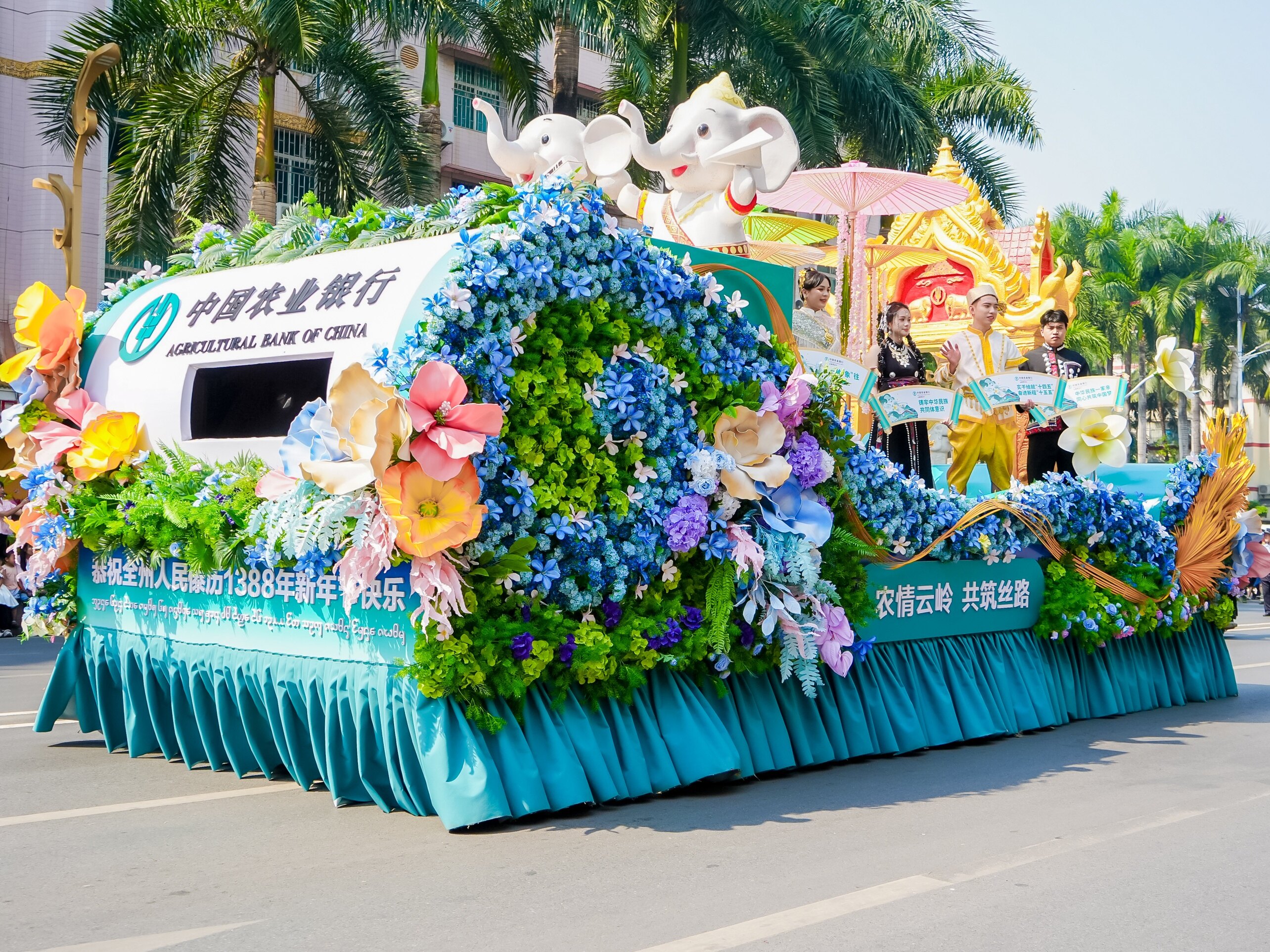● 4月份,云南各地举行多种仪式庆祝“泼水节”,农行云南分行通过花车巡游、开展金融知识宣传等多种方式,与市民游客共庆佳节。(梁志强 唐冬梅)