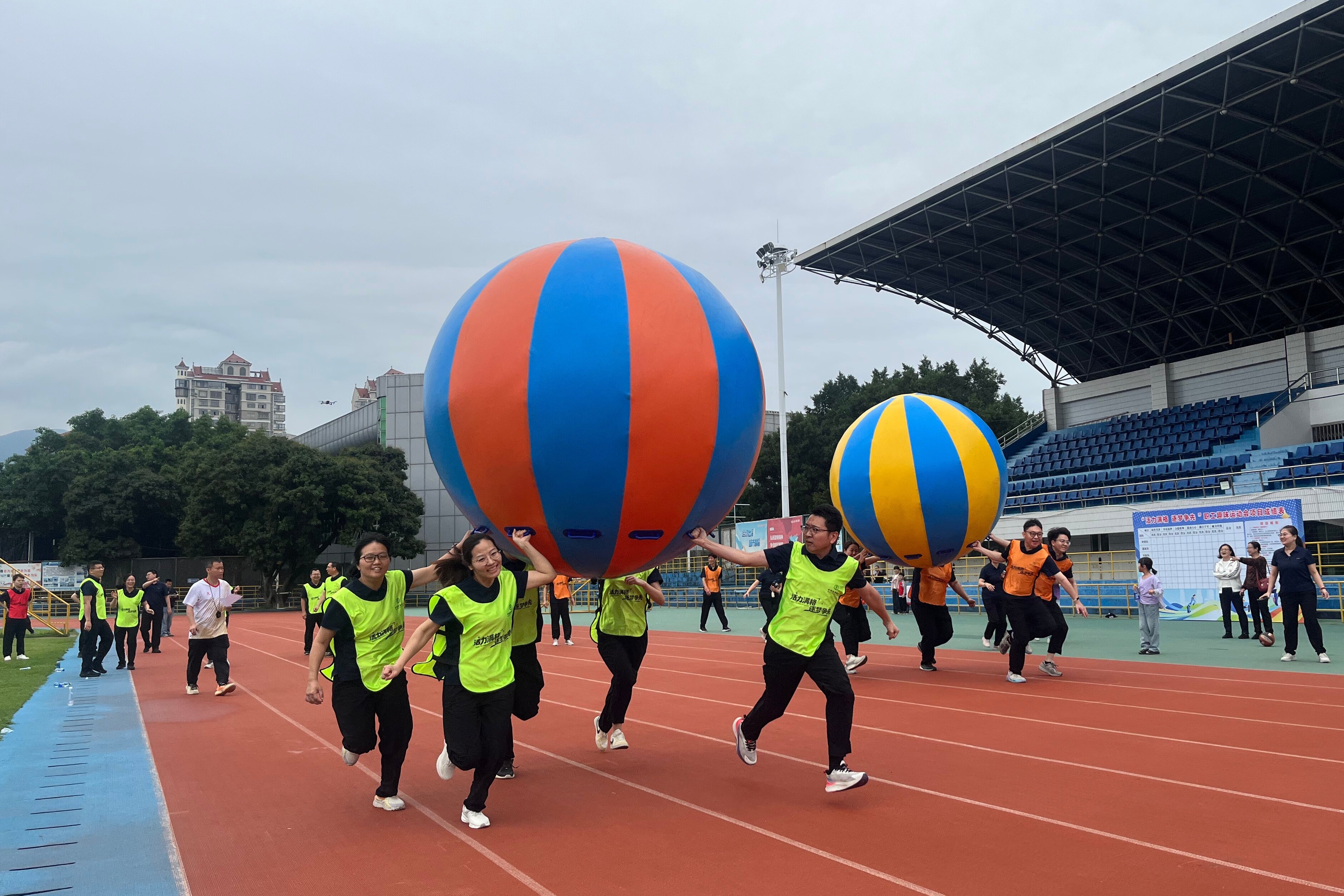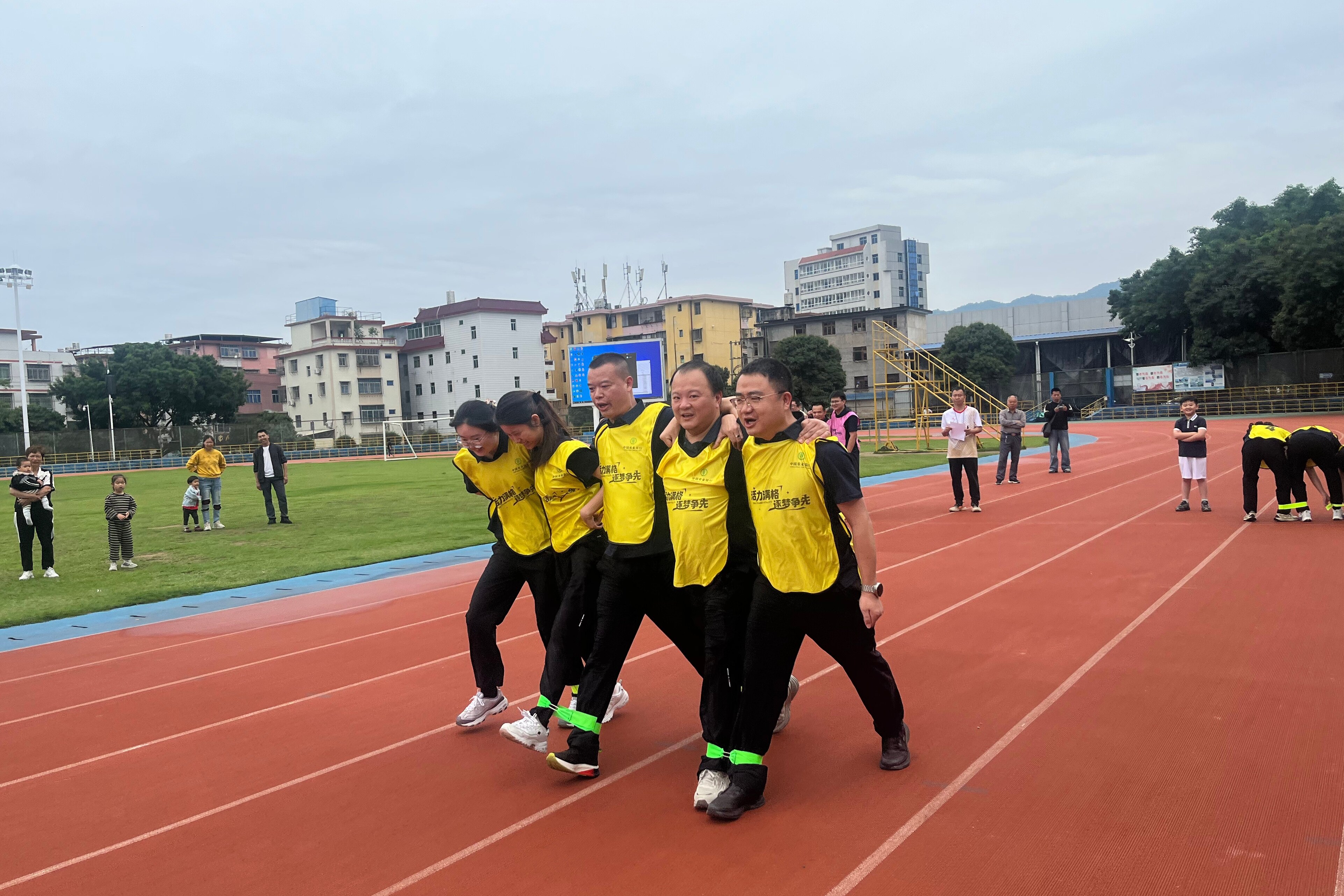 ● 4月25日,农行福建泉州永春支行举行“活力满格 逐梦争先”趣味运动会。126名员工组成的8支代表队展开激烈角逐。(陈佳锟)