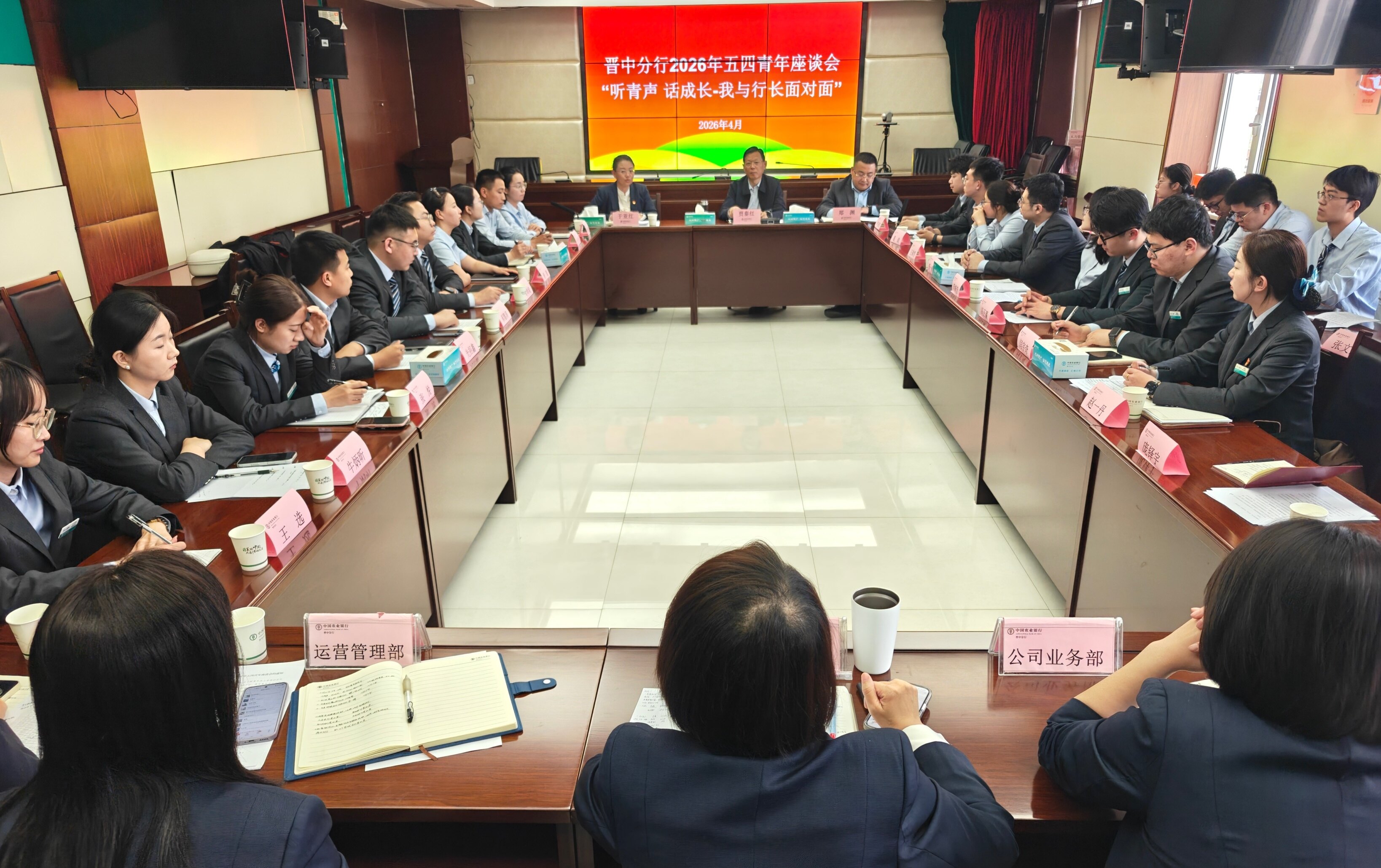 ● 4月21日,农行山西晋中分行举办“听青声 话成长·我与行长面对面”五四青年座谈会。来自基层各岗位的20余名青年员工代表齐聚一堂,讲述成长历程。(周丽君)