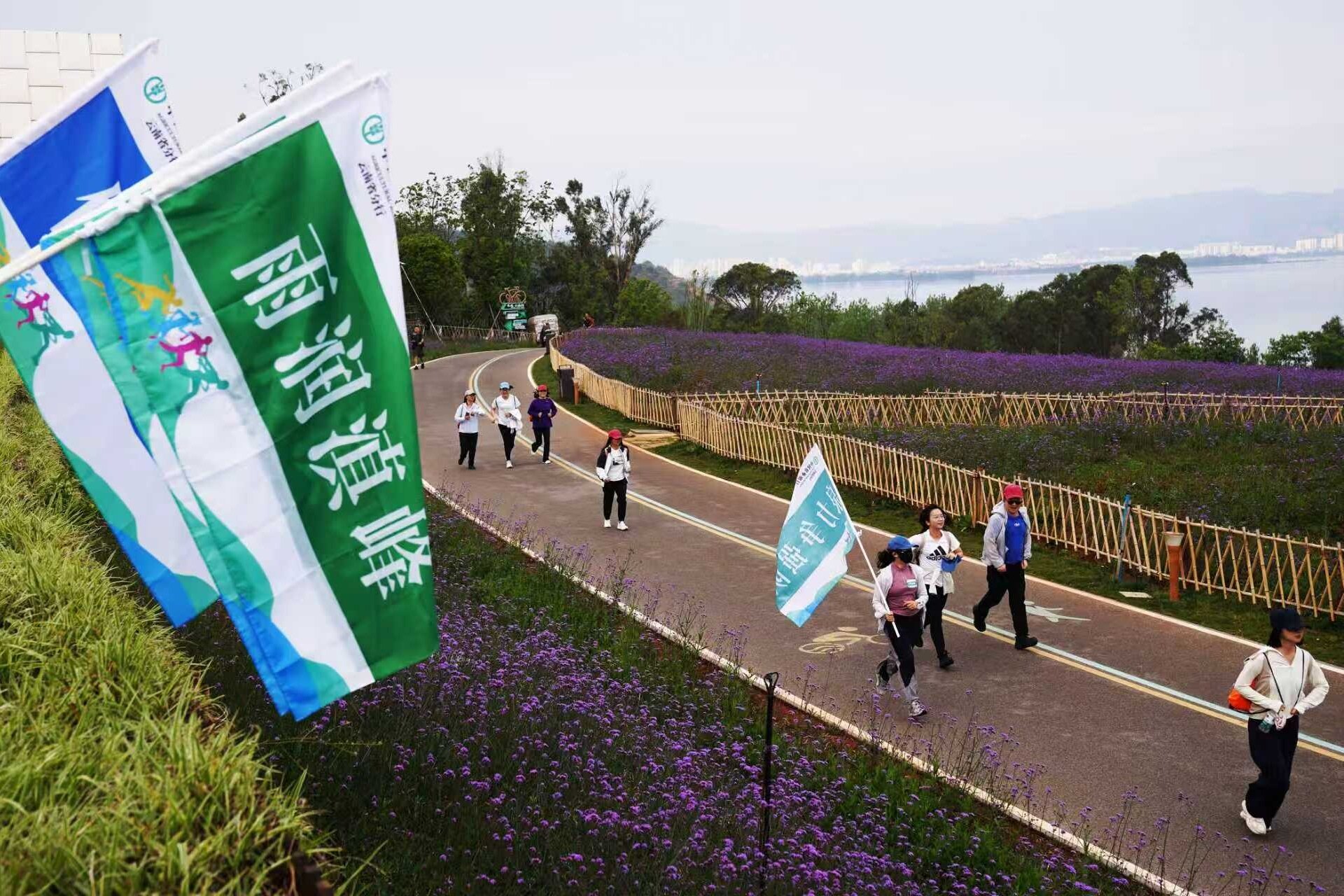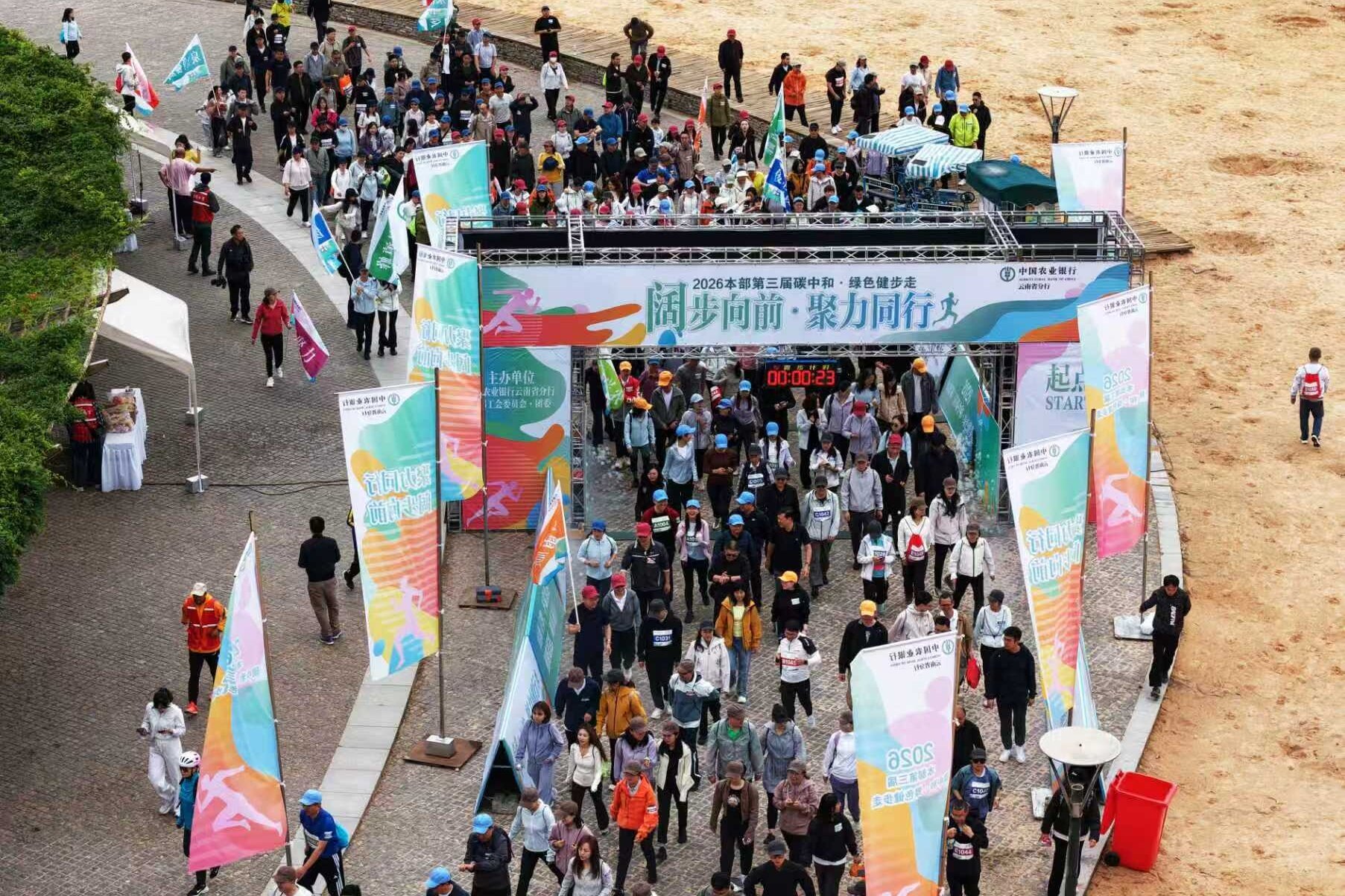 ● 4月25日,农行云南分行在滇池湖畔举行“阔步向前·聚力同行”第三届碳中和绿色健步走活动。(梁志强)