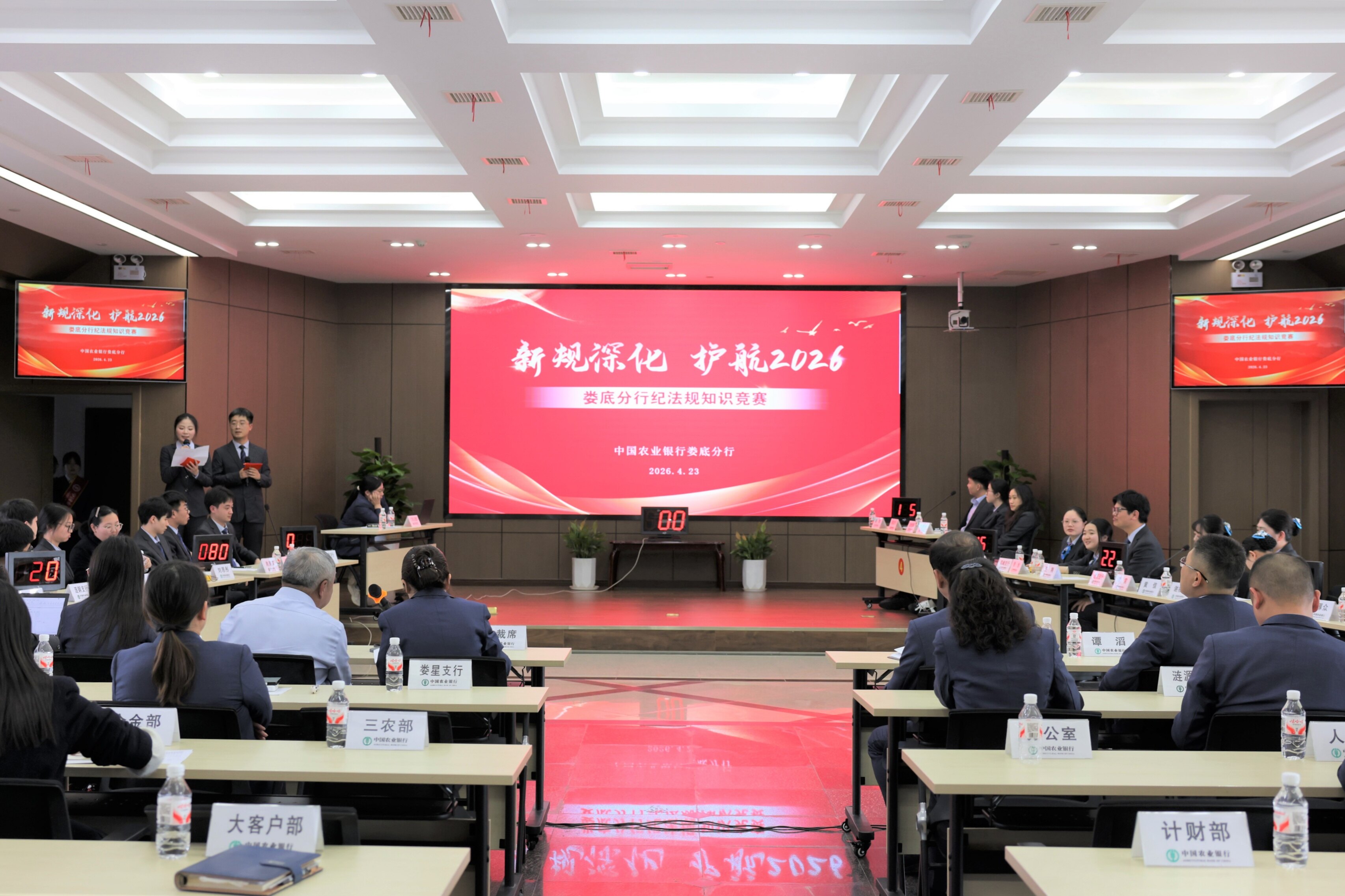 ● 4月23日,农行湖南娄底分行举办以“新规深化·护航2026”为主题的纪法规知识竞赛。比赛包含必答、抢答、附加作答等多个环节。来自分支行的7支代表队沉着应对、踊跃答题。(孙雄武)