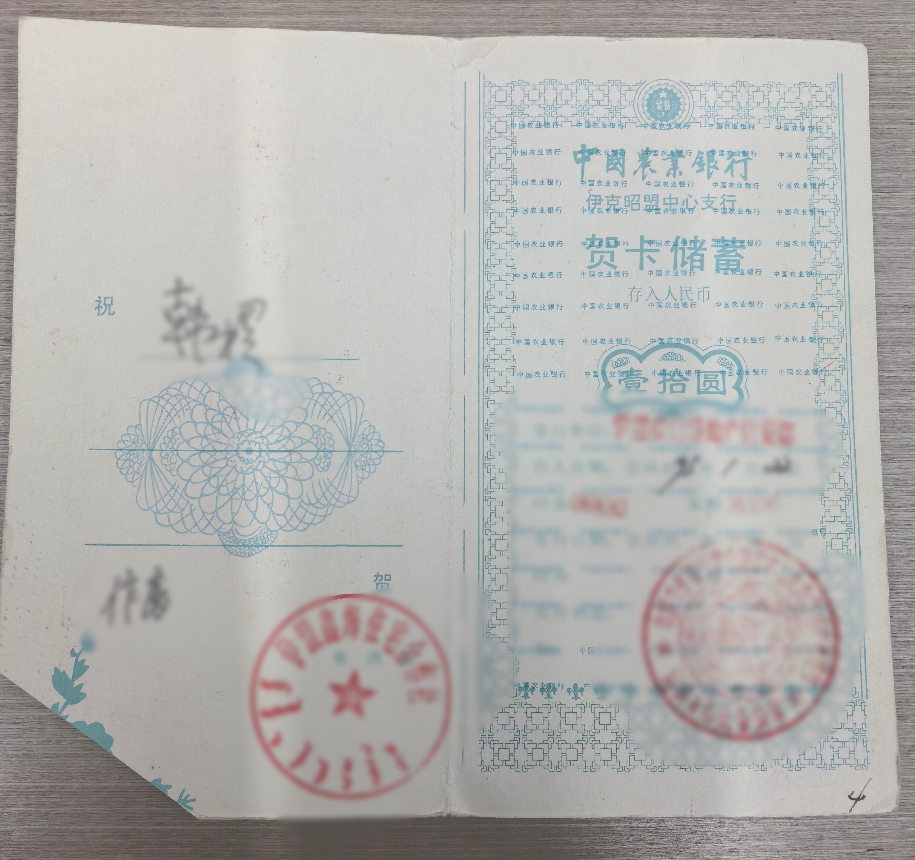 事情要追溯到9月中旬。当时,韩大爷来到鄂尔多斯绒城支行营业室,对正在大厅接待的工作人员贾燕说:“我保存了一张30年前的储蓄贺卡,虽然金额很小,但我好奇30年这10元钱的利息有多少,想把钱取出来。”